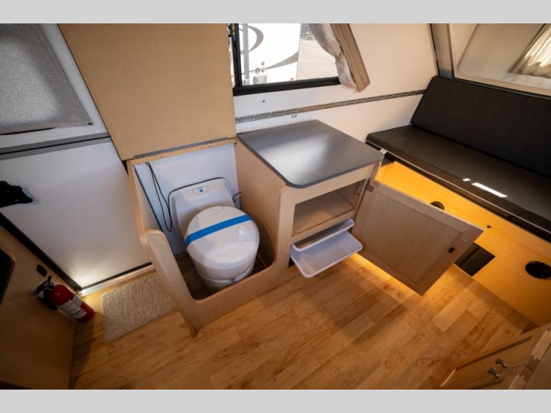 With any Expedition A-frame campers by Aliner, the construction includes a tubular steel frame that is E-coated with a powder coating on the front tongue and bumper, an Azdel lightweight, thermoplastic composite interior wall and ceiling panels, plus Performax 500 premium marine grade flooring for durability. Some extra features include high wind lift assist, additional corner windows with panoramic views, and a command A/C heat pump. Inside, there are high density foam, hypoallergenic cushions, a refrigerator with a freezer, a swivel cassette toilet, and a microwave. You will also appreciate three interior electrical outlets to keep the electronics charged and two skylights with night shades. There are available options to enhance your Expedition such as adding more interior head room with a front or rear hard dormer and/or a rear soft or hard dormer, plus you have the choice to add an outside grill.