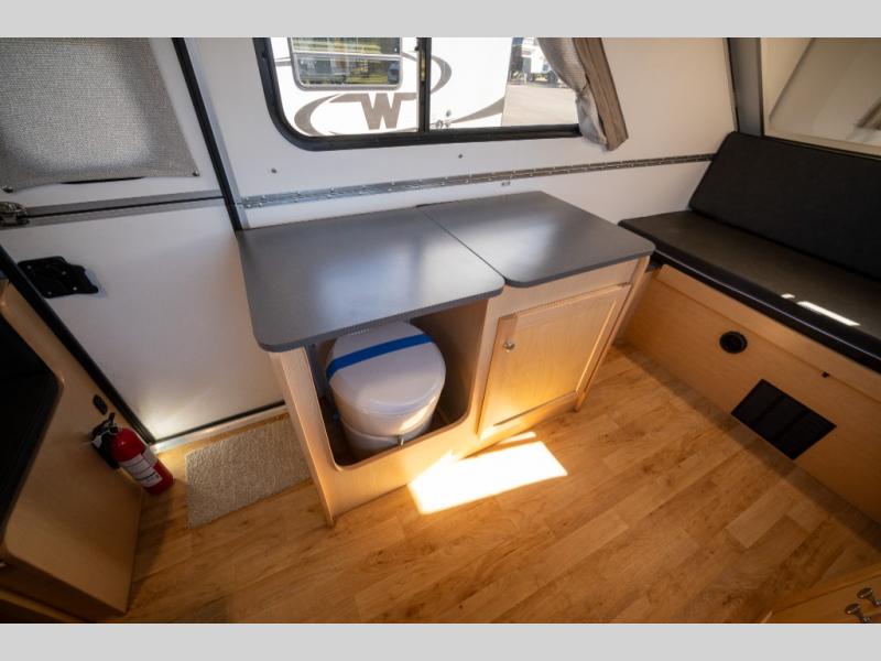 Looking for an indoor place to relax and unwind after exploring outdoors? This Expedition is easy to tow and comfortable to stay in where ever you decide to setup camp. You will have a sofa bed to sit and relax on as well as sleep at night, and there are shelves to place your things like a cellphone and book. The front convertible dinette doubles as a 40" x 80" bed for one or two more, plus there is storage under the seats. You will also appreciate having a two burner stove and a microwave to whip up a hot meal and a sink to wash the dishes and brush your teeth. And the cassette toilet is a nice convenience especially at night.