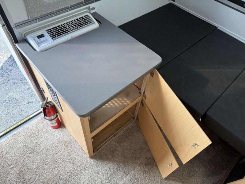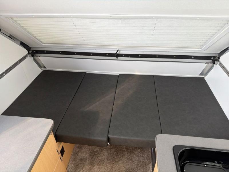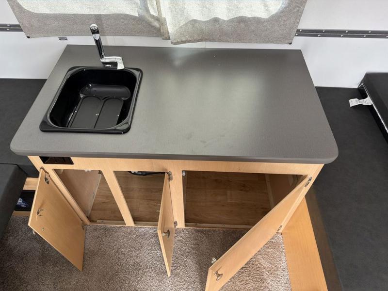 When all you need is the basics to camp because you prefer to be outdoors hiking and exploring, this Scout Lite will be perfect for you! There is sleeping space on either the front 30" x 76" bunk or the rear dinette which converts into a 40" x 76" bed. There is plenty of storage throughout between the storage under the dinette seats, a storage area across from the sink, and storage next to the sink. And you can keep everything charged with the two electrical outlets inside and the one exterior electrical outlet!