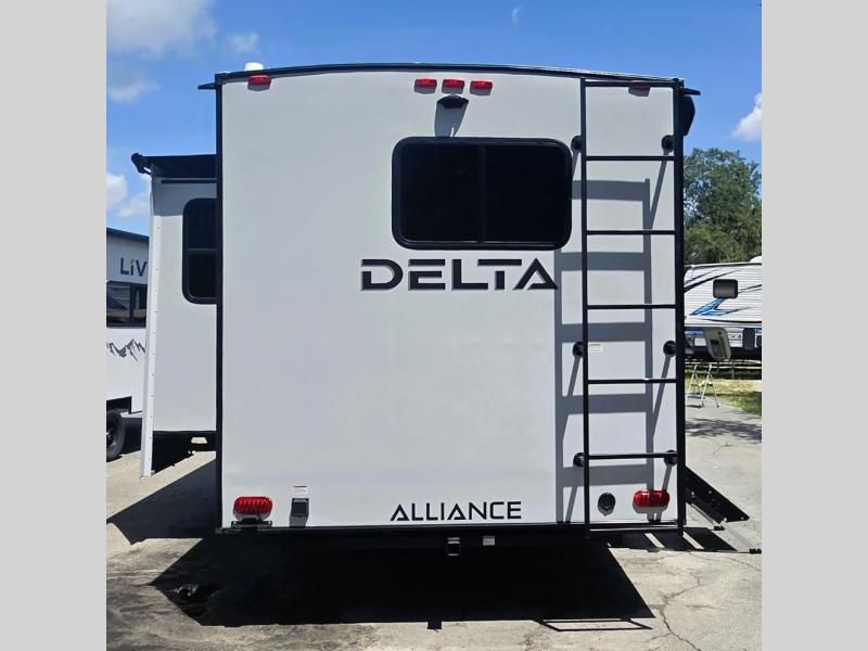 Form and function works together with every one of these Alliance RV Delta travel trailers! They are built with a walk-on roof with a seamless PVC roof covering, Mylar reinforced exterior seals, and a heated and enclosed underbelly to protect your unit in all seasons. The commercial grade vinyl flooring will be easy to clean and the oversized atrium windows throughout let in plenty of natural sunlight. With 62 cu. ft. of drop frame pass-through storage, you can bring along all of your essential camping gear plus it has USB charging for more convenience. There are many at home interior conveniences including a Bluetooth speaker, USB charging throughout, and even a pull-out kitchen trash can. Come find your favorite model today!