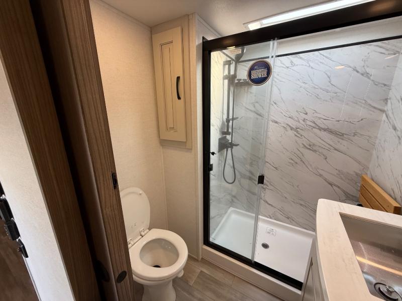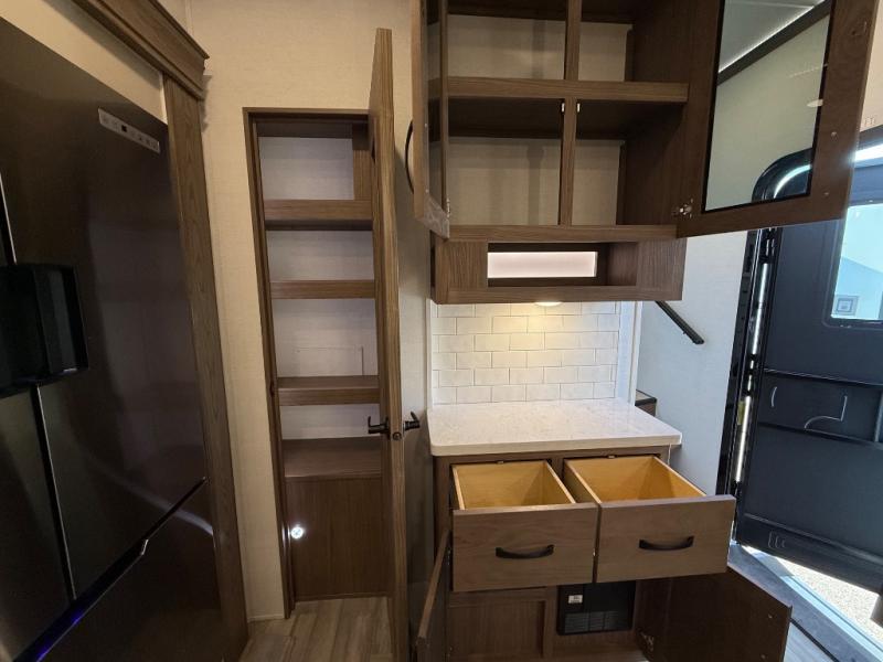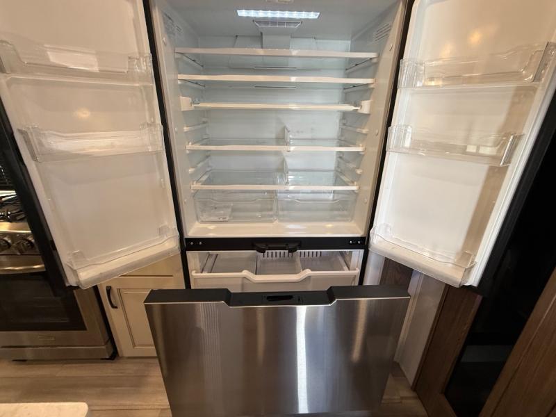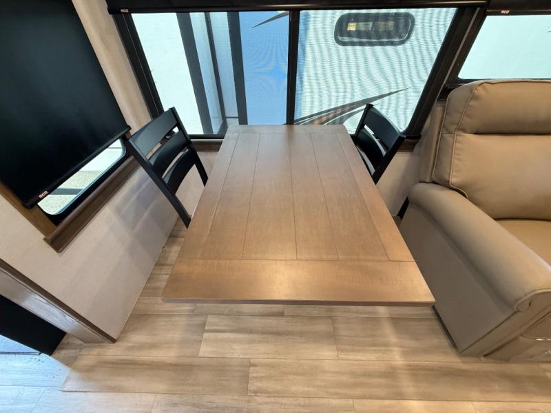 The Paradigm fifth wheels by Alliance RV are functional, high-quality, and luxurious for an unforgettable camping experience. There are three A/C units and a 40K BTU furnace to keep you comfortable year around, and you'll appreciate additional convenient amenities, like the all-in-one enclosed/heated utility center and the color coded and numbered wiring. A Rota-Flex pin box comes standard for hassle-free towing, along with Super-G 4,400 lb. rated tires and Dexter 7,000 lb. axles. You'll love the kitchen with its LG solid surface countertops and Insignia range, plus there is LED motion lighting in the pantry and a Maxx fan with a rain sensor to keep everything fresh when making dinner. Each model also includes an HD Smart TV in the living room and bedroom, plus a Winegard Air 360 antenna to keep you connected to the outside world. And of course there are a variety of options you can choose from to further customize your fifth wheel; dual pane windows, Super Solar Plus, slide out awning toppers, and generator prep or a generator to name a few!