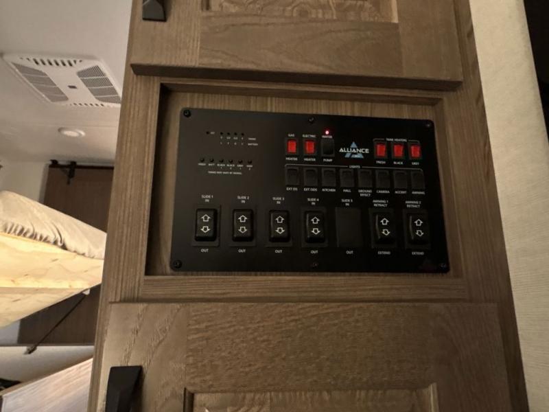 The Paradigm fifth wheels by Alliance RV are functional, high-quality, and luxurious for an unforgettable camping experience. There are three A/C units and a 40K BTU furnace to keep you comfortable year around, and you'll appreciate additional convenient amenities, like the all-in-one enclosed/heated utility center and the color coded and numbered wiring. A Rota-Flex pin box comes standard for hassle-free towing, along with Super-G 4,400 lb. rated tires and Dexter 7,000 lb. axles. You'll love the kitchen with its LG solid surface countertops and Insignia range, plus there is LED motion lighting in the pantry and a Maxx fan with a rain sensor to keep everything fresh when making dinner. Each model also includes an HD Smart TV in the living room and bedroom, plus a Winegard Air 360 antenna to keep you connected to the outside world. And of course there are a variety of options you can choose from to further customize your fifth wheel; dual pane windows, Super Solar Plus, slide out awning toppers, and generator prep or a generator to name a few!