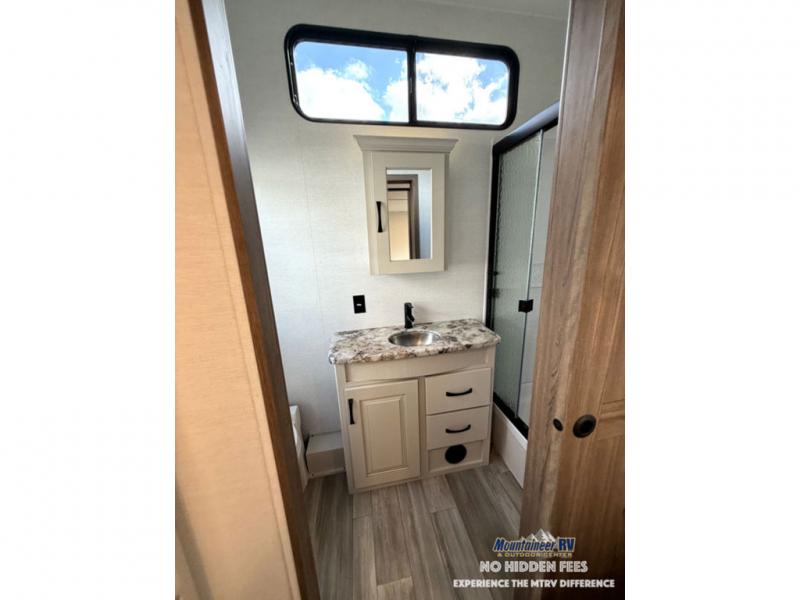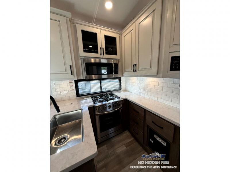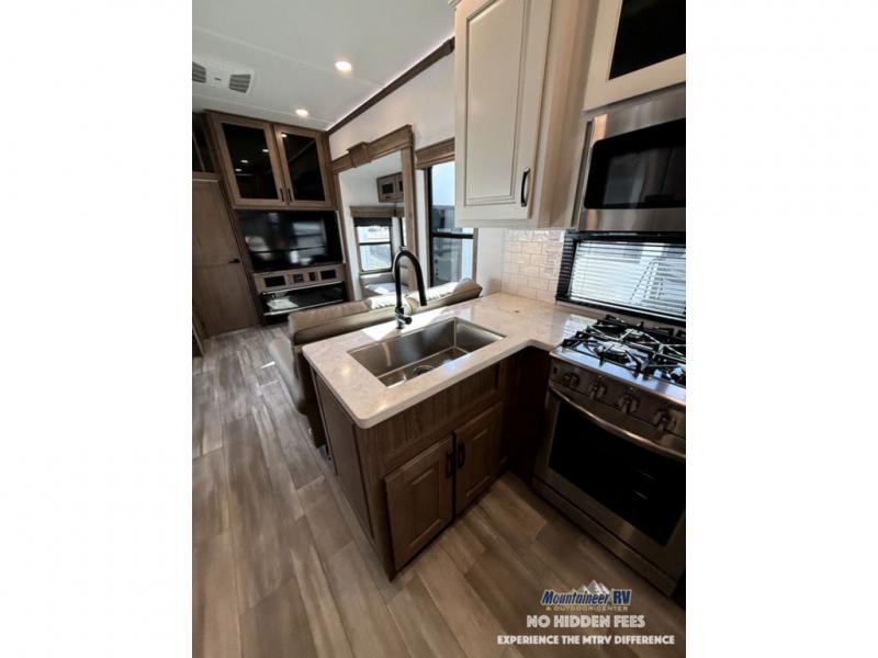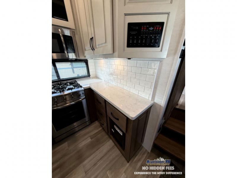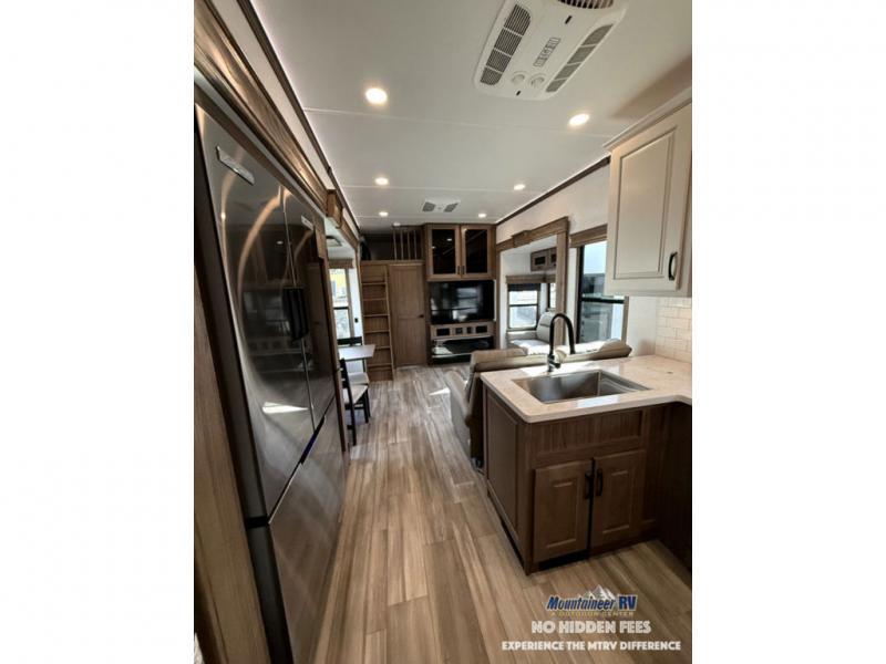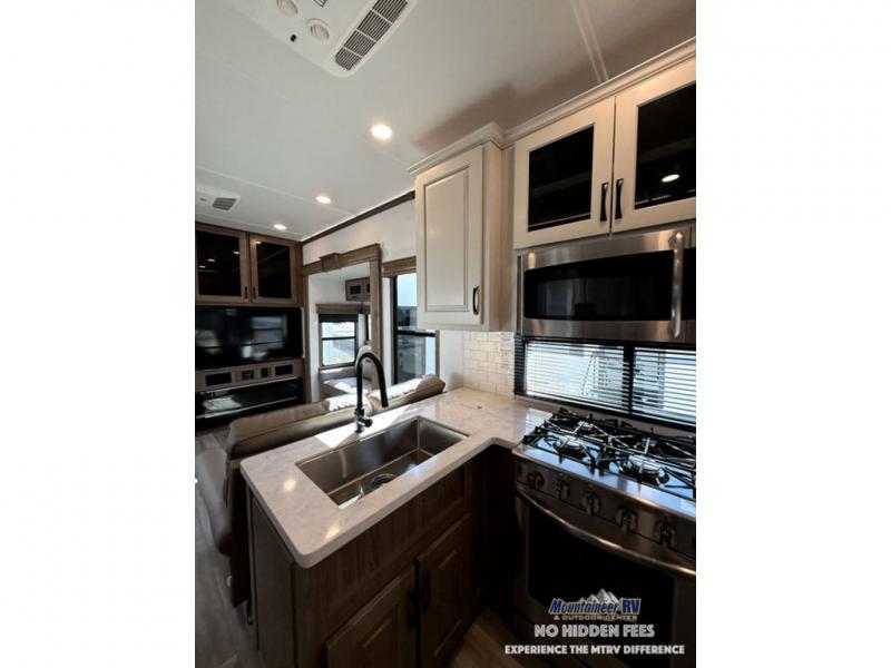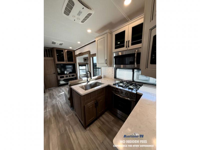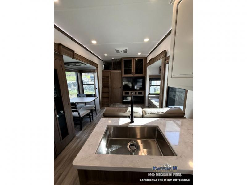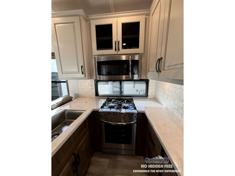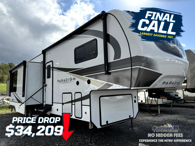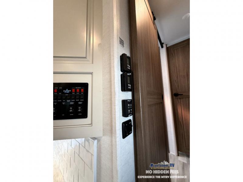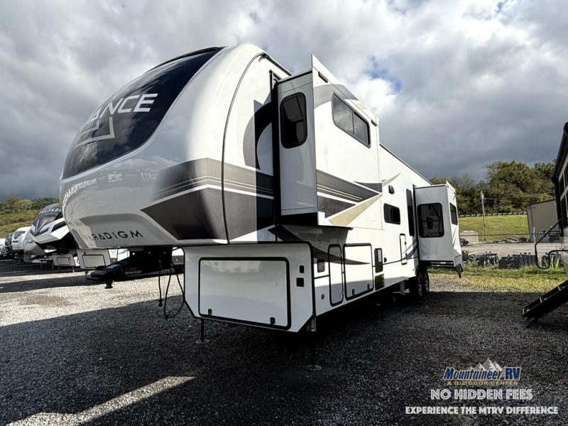 The Paradigm fifth wheels by Alliance RV are functional, high-quality, and luxurious for an unforgettable camping experience. There are three A/C units and a 40K BTU furnace to keep you comfortable year around, and you'll appreciate additional convenient amenities, like the all-in-one enclosed/heated utility center and the color coded and numbered wiring. A Rota-Flex pin box comes standard for hassle-free towing, along with Super-G 4,400 lb. rated tires and Dexter 7,000 lb. axles. You'll love the kitchen with its LG solid surface countertops and Insignia range, plus there is LED motion lighting in the pantry and a Maxx fan with a rain sensor to keep everything fresh when making dinner. Each model also includes an HD Smart TV in the living room and bedroom, plus a Winegard Air 360 antenna to keep you connected to the outside world. And of course there are a variety of options you can choose from to further customize your fifth wheel; dual pane windows, Super Solar Plus, slide out awning toppers, and generator prep or a generator to name a few!