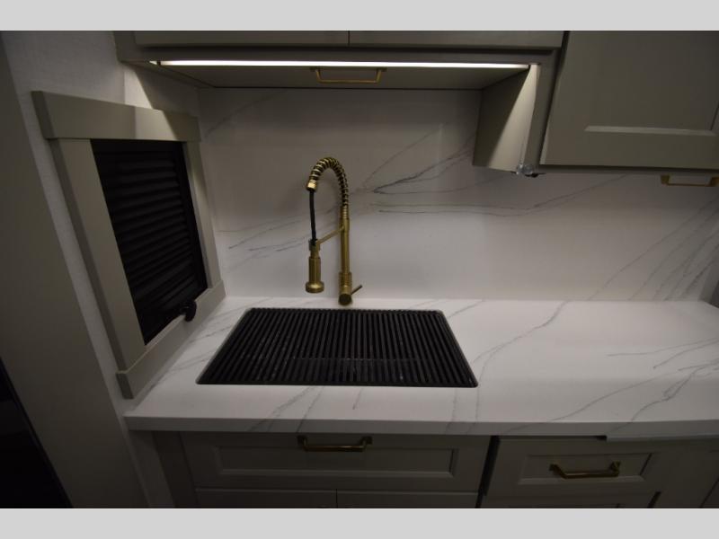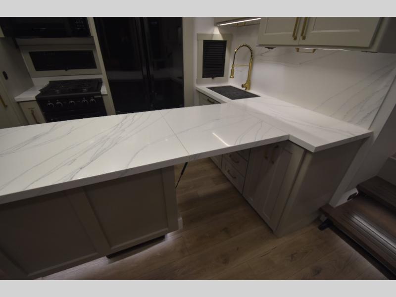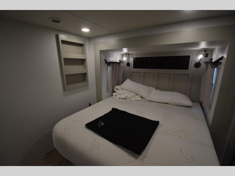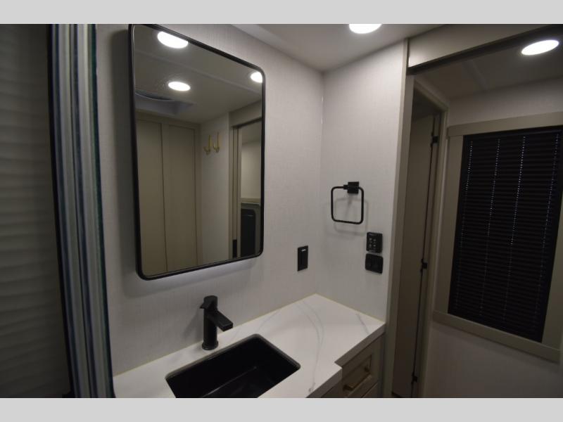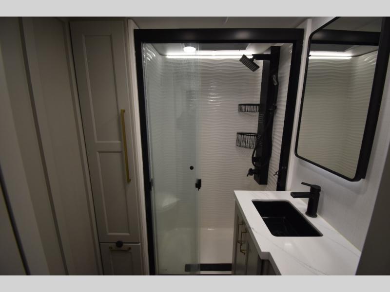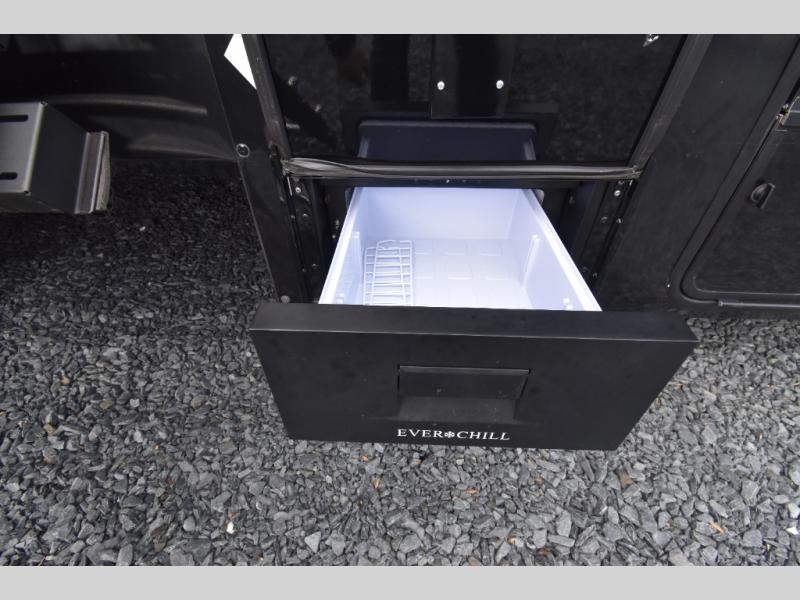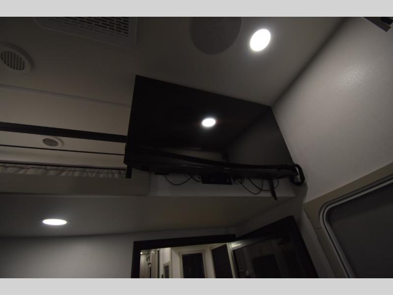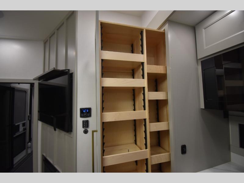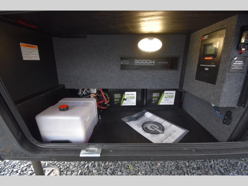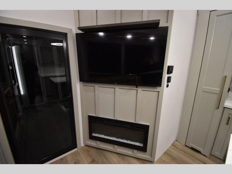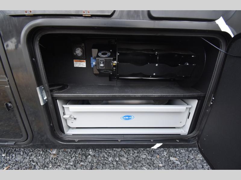 With any Model G toy hauler fifth wheel by Brinkley you will enjoy luxurious amenities, tons of storage space, and innovative features that have been developed and tested in the real world. Durable construction includes an industry leading PDI process, an industry best insulation package, and reinforced and walkable slide roofs. Some of the exterior features you'll find are a 3-way pass-through with a multi-functional flip-up bulkhead wall, under I-beam storage, a MAX-Vision reverse lighting system, and a low-maintenance roof to name a few. A Rockford Fosgate audio system comes standard, along with a OneControl app system that lets you control your fifth wheel's functions right from your mobile device. You will find the solar system with a designated storage area to be ultra convenient, plus there is a FlexPower 5500 with a dual fuel inverter generator for all your power needs. Head inside to find a residential interior with Brinkley's CraftSense wood trim construction, floating entrance steps, integrated window screens and insulated blackout blinds, and residential solid surface countertops plus backsplash. You will also enjoy the neon shower lighting and recessed medicine cabinets in the bath, plus motion activated LED bed lights and dual bedside outlets in the bedroom. Choose a Model G toy hauler fifth wheel to experience all the luxury it has to offer!