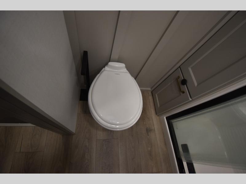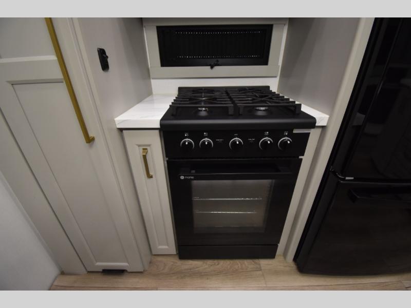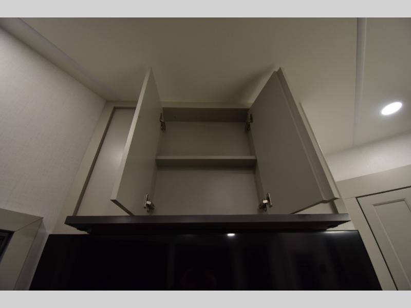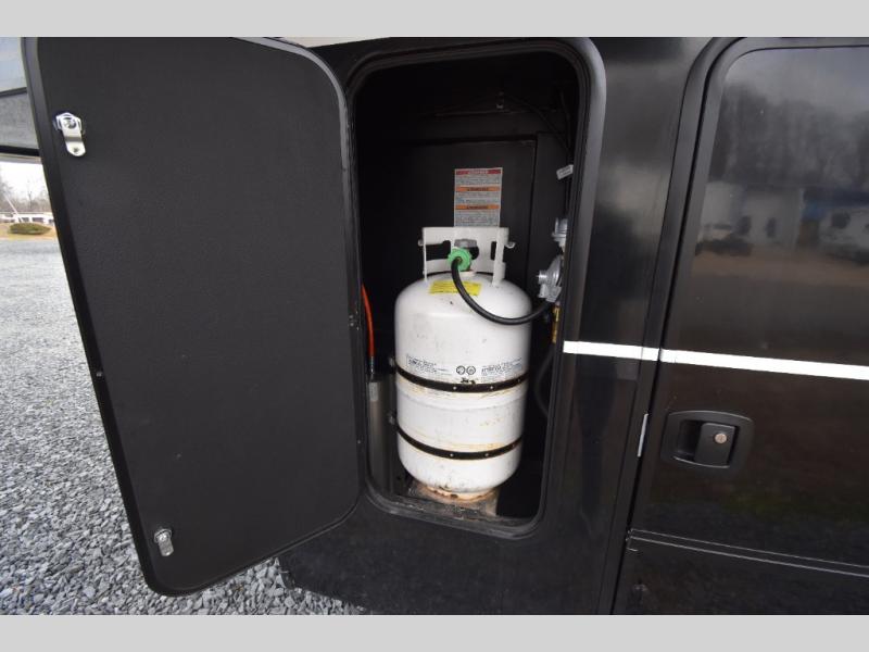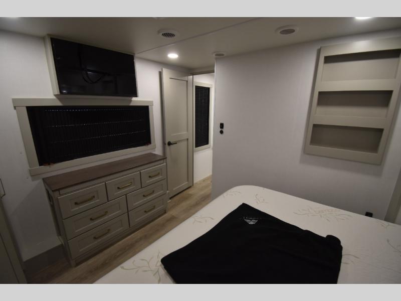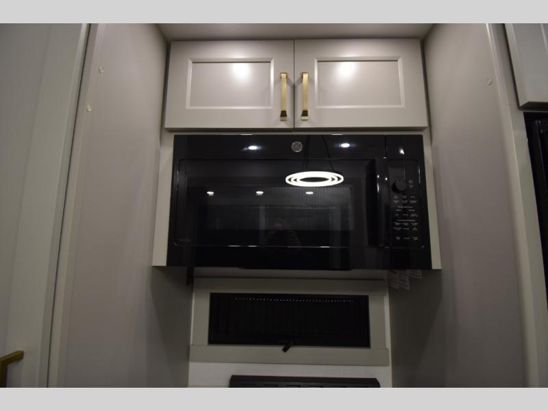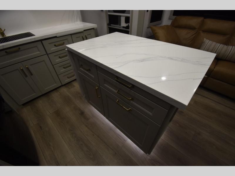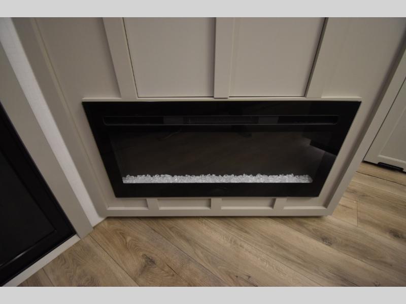 Prepare to be amazed by all the features packed into this toy hauler! There are triple slides that will provide your crew with more space, a separate garage that can sleep five with the loft included, plus a bath and a half for added convenience. The chef of your group will love the middle kitchen with a waterfall island that converts to a counter peninsula, a pull-out pantry, a GE Energy Star 19 cu. ft. refrigerator with ice and filtered water, and much more. In the combined kitchen and living space you'll find a spacious sofa with heat and massage, a fireplace, a TV, plus convenient dog bowls and shoe storage. After your toys are unloaded from the garage, you can relax on the independent dual sofas with a Fold-N-Stow table in between, and your guests can sleep on the Happijac® Sofa and Bed Lift system. You will find the front private bedroom with a king bed slide out will provide a great night's rest, and you'll also find a walk-in closet, under-bed storage, and a sliding dresser top with hidden storage for special belongings.