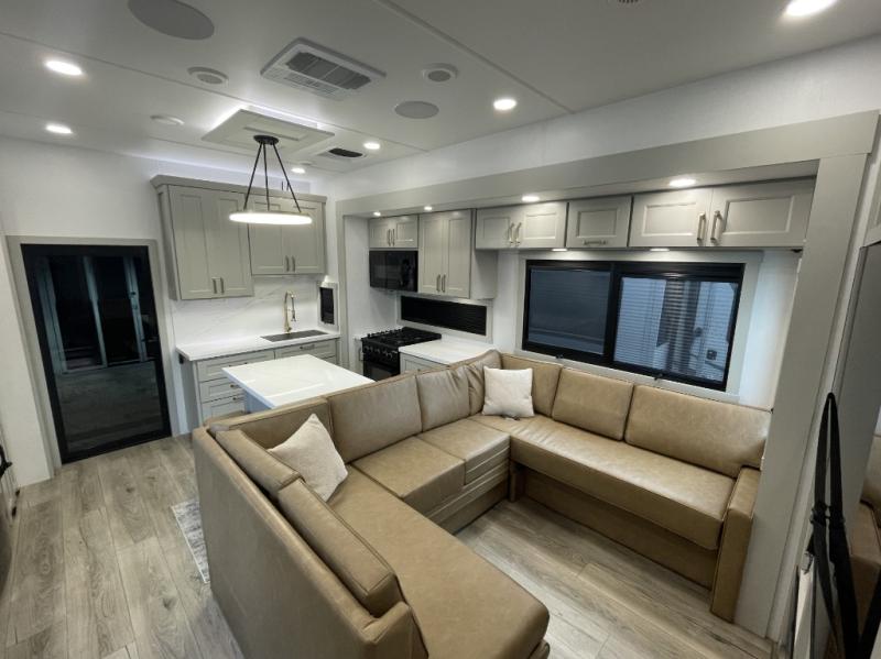 Step into luxury fifth wheel living with this pre-owned 2024 Brinkley Model G 3950, a premium toy hauler that redefines comfort, innovation, and versatility for serious RV enthusiasts. Built with exceptional craftsmanship and thoughtful design, the Brinkley Model G series is known for combining residential luxury with rugged functionality, making it the perfect RV for travelers who want to bring their gear, their family, and their sense of adventure along for the ride.