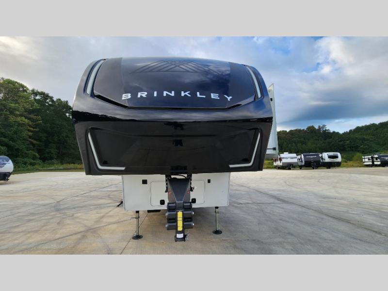 The Brinkley mid-profile Model Z fifth wheels bring you clean lines and an upscale look with plenty of style and exciting new features like the industry first brass plumbing connections. These units also feature an automotive grade front cap, plenty of exterior storage, dual exterior hot and cold showers, and wide stance leveling jacks for easy set up. Residential frameless windows provide a clean look and beautiful views, and ample electrical outlets and 6 USB/USB-C outlets allow all of your electronics and appliances to easily be used and charged.