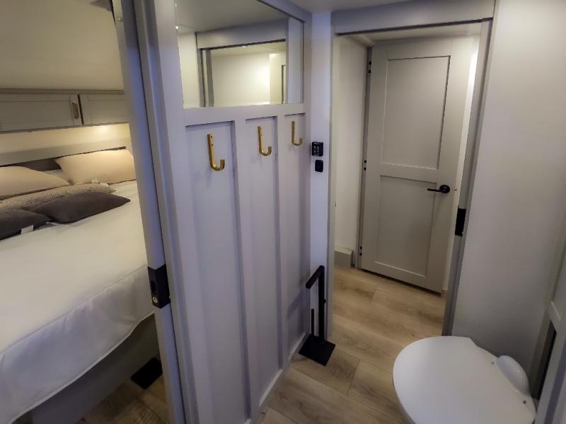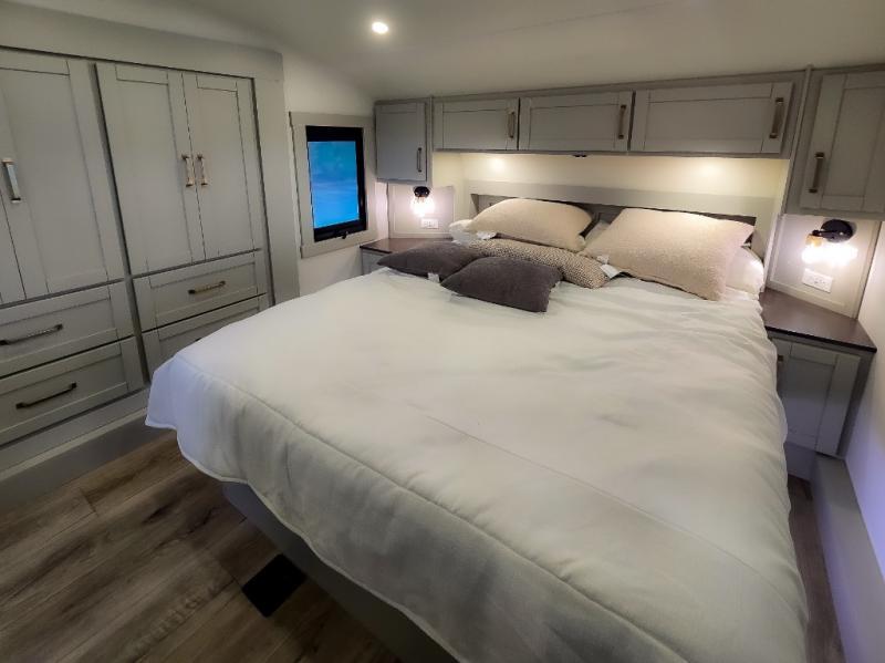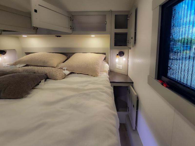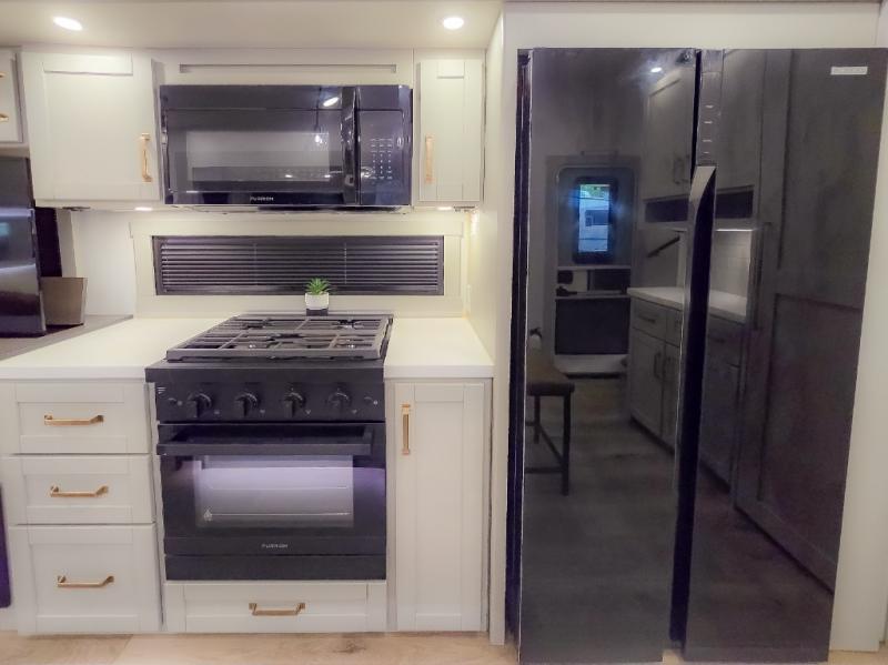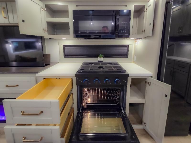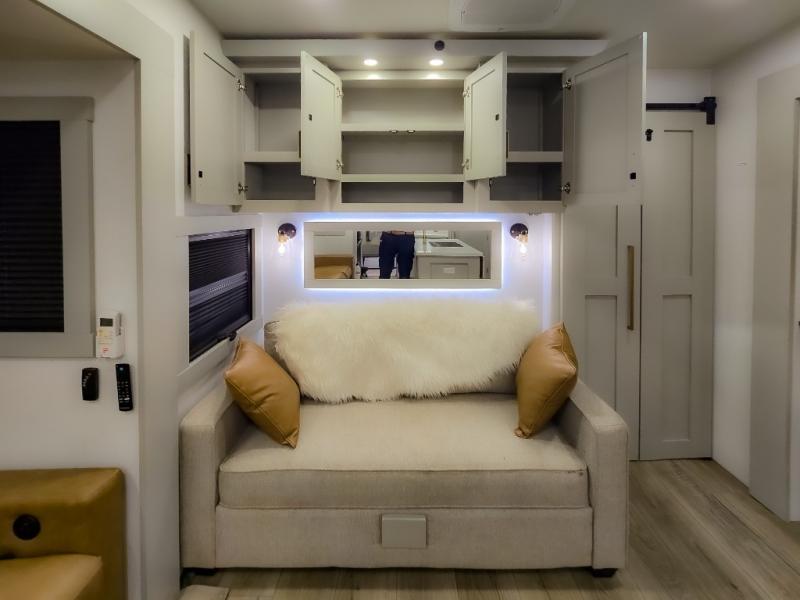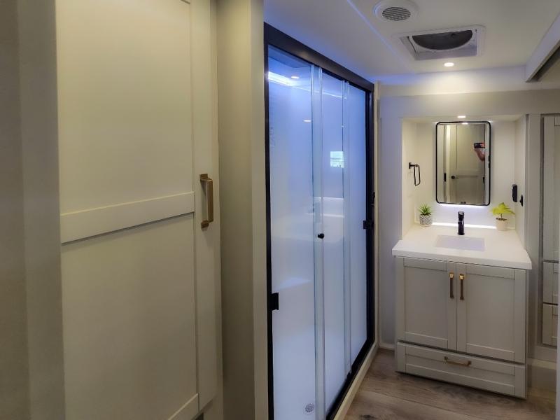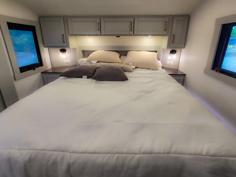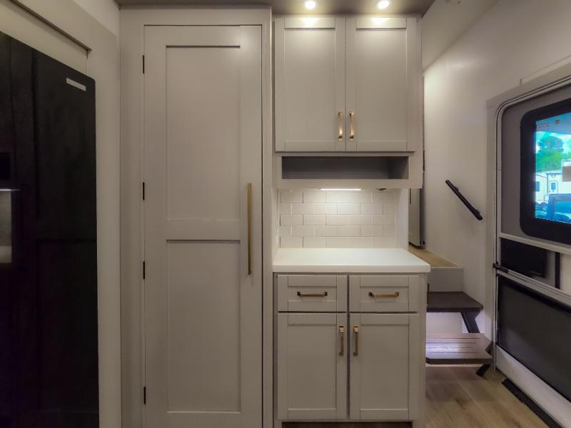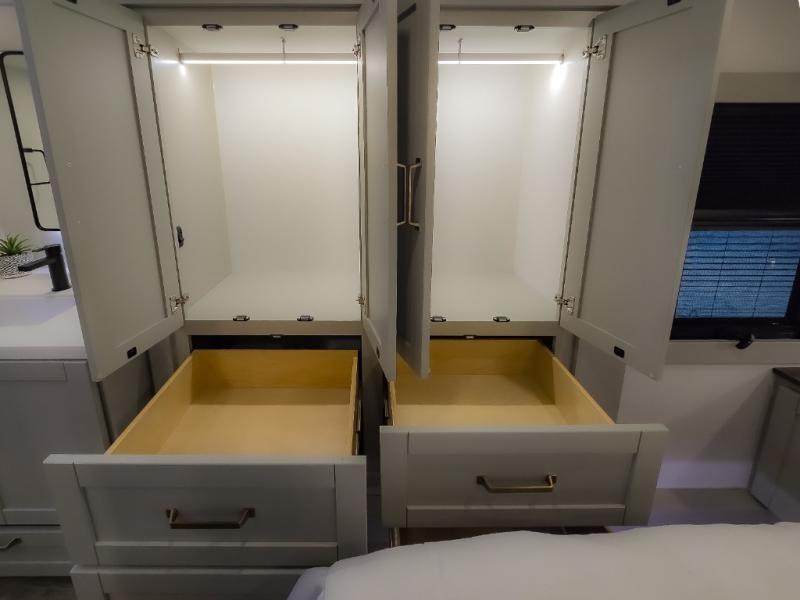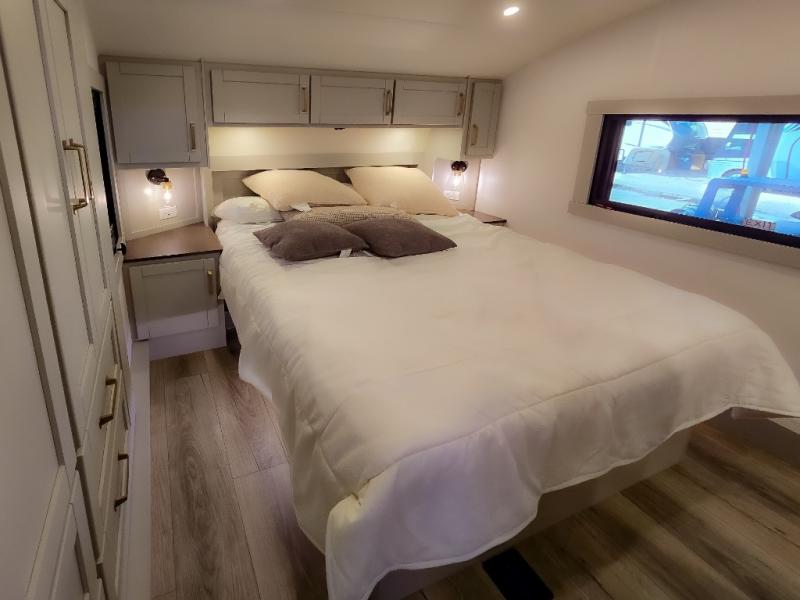 The Brinkley mid-profile Model Z fifth wheels bring you clean lines and an upscale look with plenty of style and exciting new features like the industry first brass plumbing connections. These units also feature an automotive grade front cap, plenty of exterior storage, exterior hot and cold showers, and wide stance leveling jacks for easy set up. Residential frameless windows provide a clean look and beautiful views, and ample electrical outlets and 6 USB/USB-C outlets allow all of your electronics and appliances to easily be used and charged.