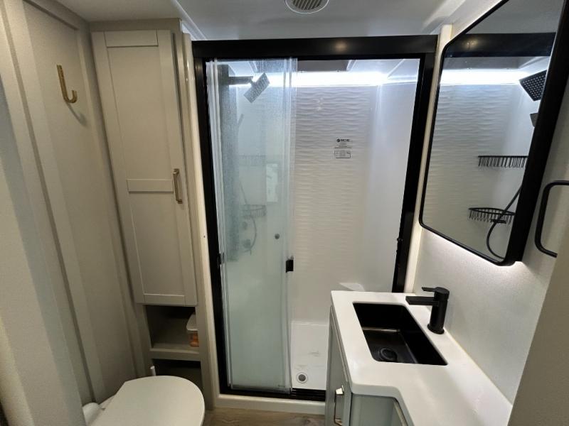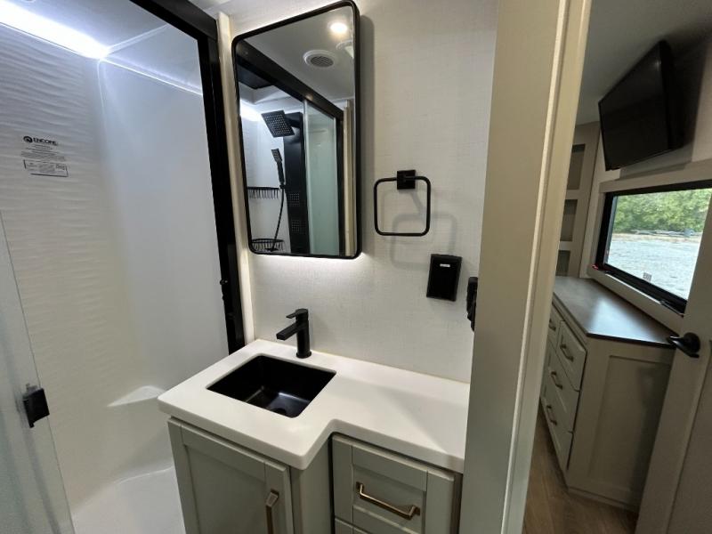 The Brinkley mid-profile Model Z fifth wheels bring you clean lines and an upscale look with plenty of style and exciting new features like the industry first brass plumbing connections. These units also feature an automotive grade front cap, plenty of exterior storage, dual exterior hot and cold showers, and wide stance leveling jacks for easy set up. Residential frameless windows provide a clean look and beautiful views, and ample electrical outlets and 6 USB/USB-C outlets allow all of your electronics and appliances to easily be used and charged.