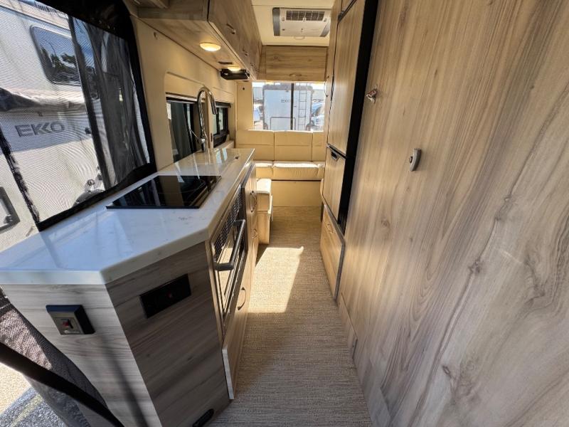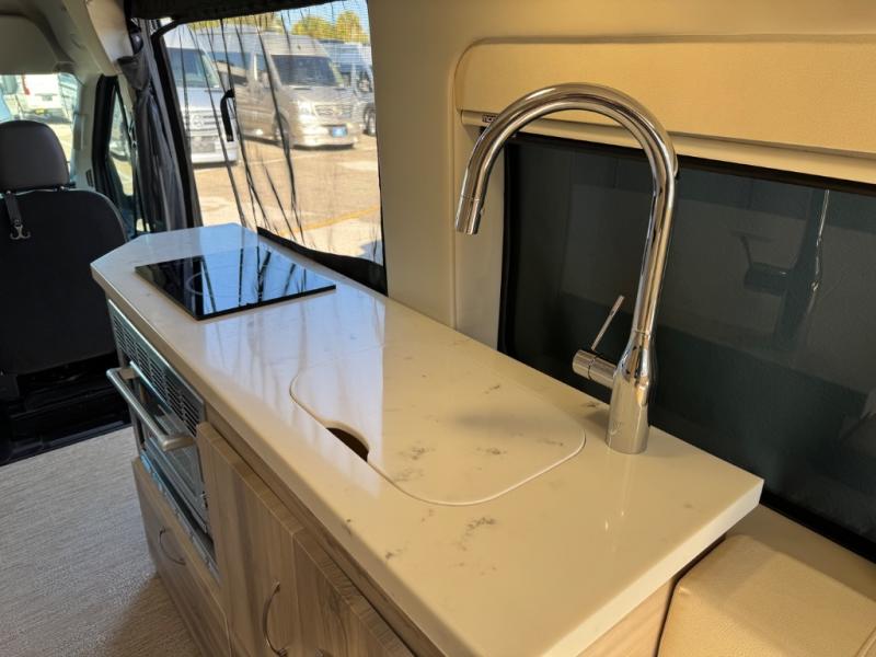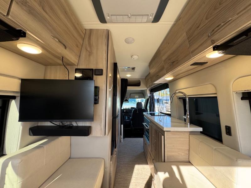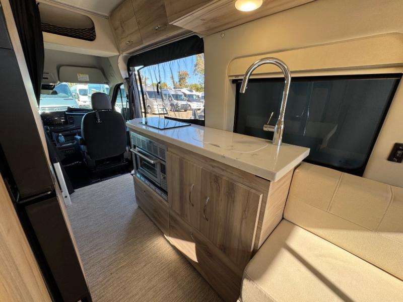 Luxury and functionality come standard in the Bayside Class B gas motorhomes by Chinook. The Ford Transit 3.5L Eco-Boost twin turbo gas engine can power your trips across the country or to your local state park. And you can go off the beaten path with the standard AWD when the adventure calls for it. Each model includes a thermal suppression system, a Dometic Penguin ll A/C, plus a Timberline 1.0 gas fired hydronic heat and on-demand hot water system for added convenience. The AGM house batteries provide 200 Amp hours and the 200 watt solar panel system includes a solar charger and display so you'll be ready to go off-grid. If you upgrade to the Bayside 360 Package, you'll enjoy a Truma Aventa A/C in place of the Dometic A/C, a Victron inverter in place of the Xantrex inverter, and more power features to keep you going.