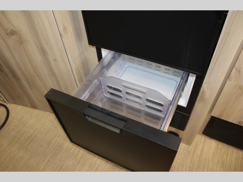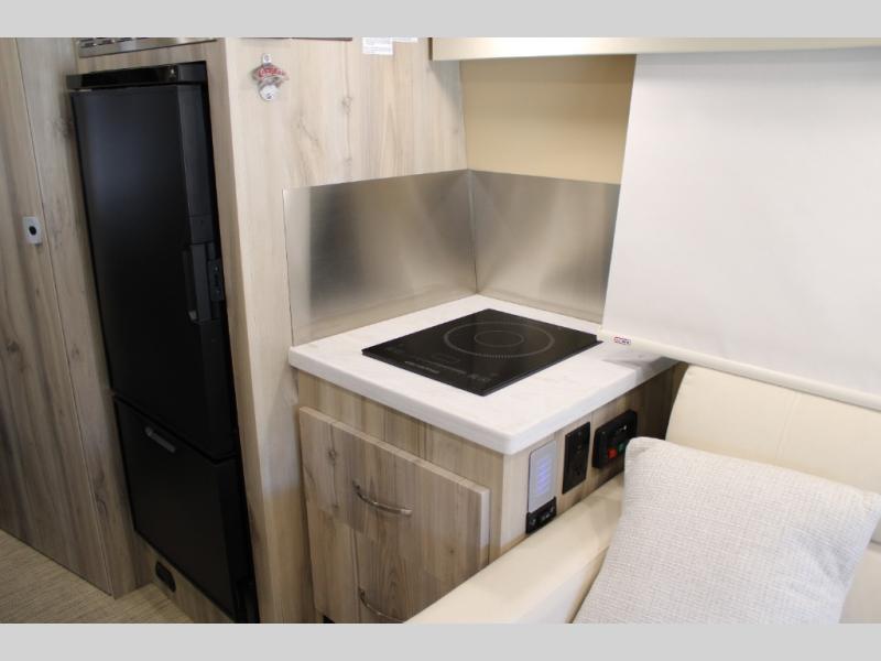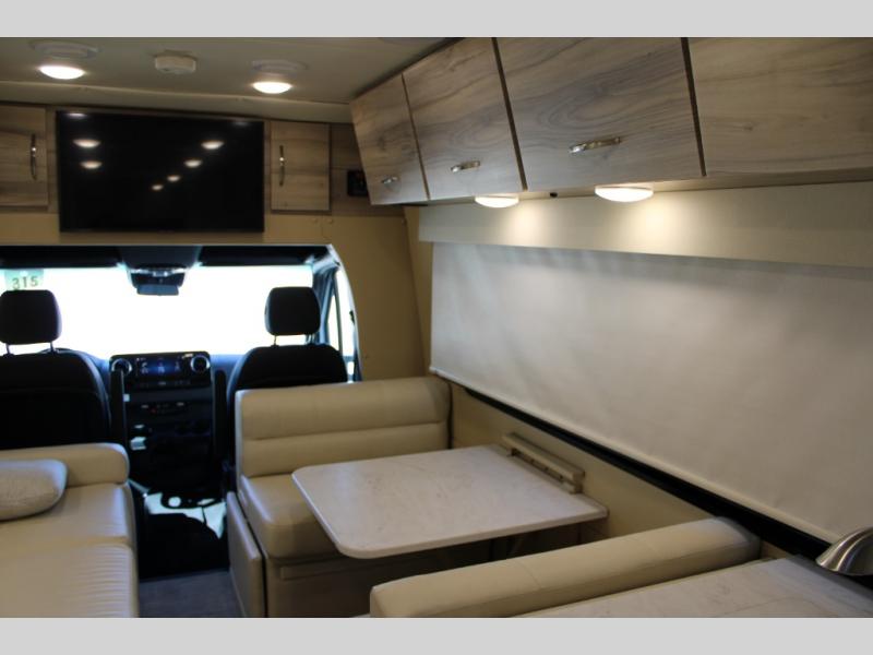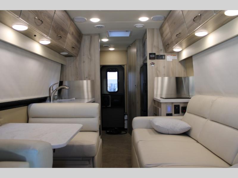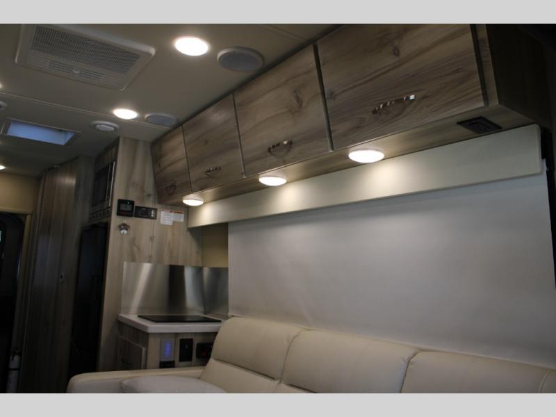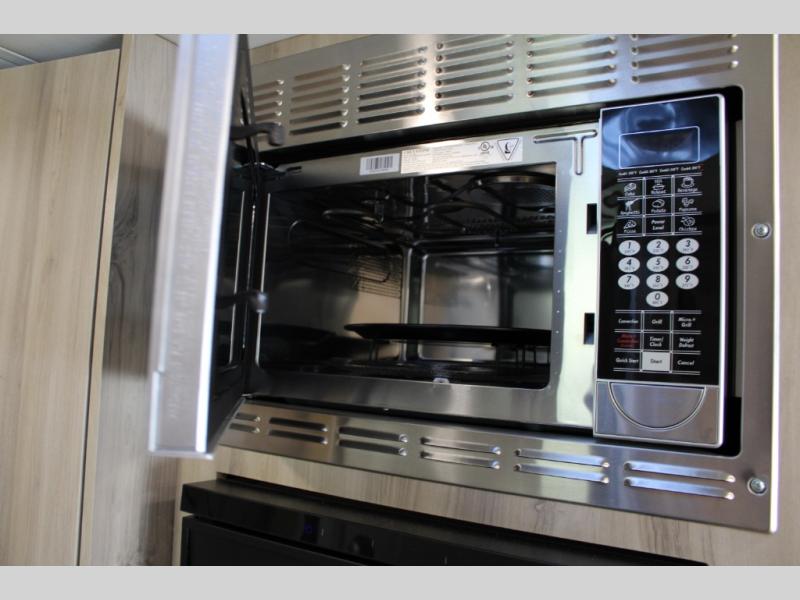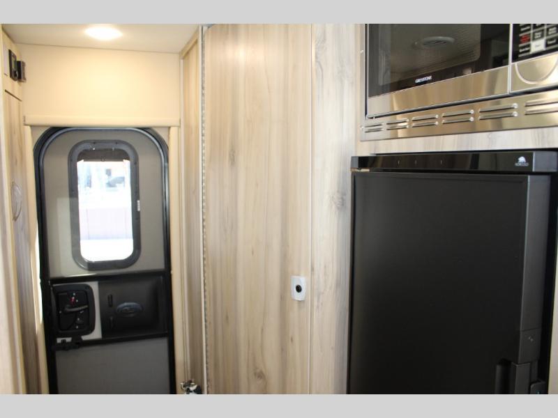 Hit the road in true luxury with this motorhome! The separated bathroom makes it convenient for one to use the private toilet and sink while another cleans up in the 39" x 29" shower. There is also a wardrobe to keep your towels close by and a powered vent fan for ventilation with a rain sensor and reversible functions. This model includes a single sofa and a booth dinette that can convert to a 76" x 84" bed for a great night's rest. You can prepare delicious home cooked meals with a single induction cooktop which can be removed for exterior cooking, a Dometic 6 cu. ft. dual-swing motion doors refrigerator to store any leftovers, and a 1.1 cu. ft. stainless steel convection microwave to heat them up. The Entertainment Center package not only includes a 32" Samsung TV, but also a high performance JBL by Harman Aura in-wall media center with a JBL sub-woofer and JBL 6.5" Coaxial ceiling speakers.