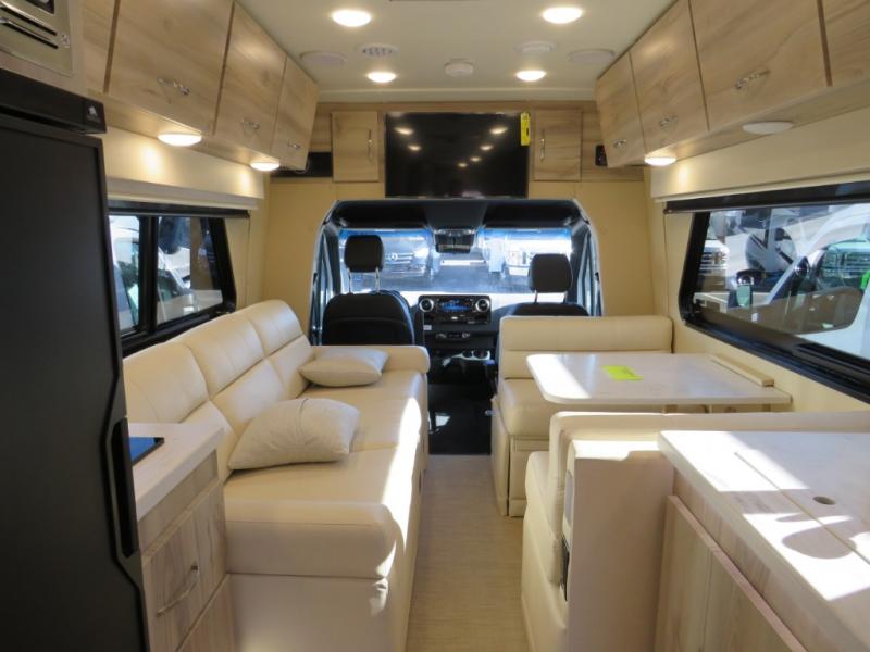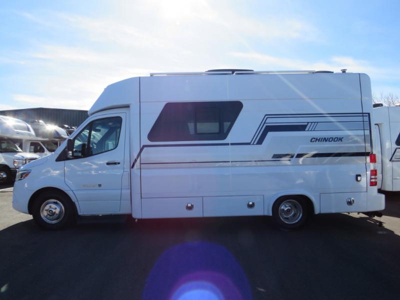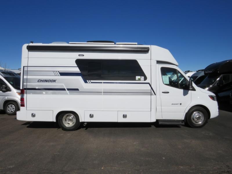 Each one of these Chinook RV Summit Class B+ diesel motorhomes are powered by a Mercedes-Benz Sprinter chassis and a 6 cylinder diesel engine! These units are built sturdy for all-season functionality with steel tubing, a floor structure with a Hushmat thermo and moisture barrier on bottom, and a 16" O.C. truss-style aluminum rafter roof insulated with rolled fiberglass insulation which keeps you cool in the summer and warm in the winter. The dual pane frameless windows have an automotive design with openable sections and screens to let in some fresh air too. There is a Truma Combi-Plus heater system with an integrated water heater, plus a 15,000 BTU A/C to keep you comfortable year around.