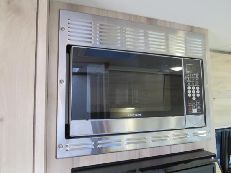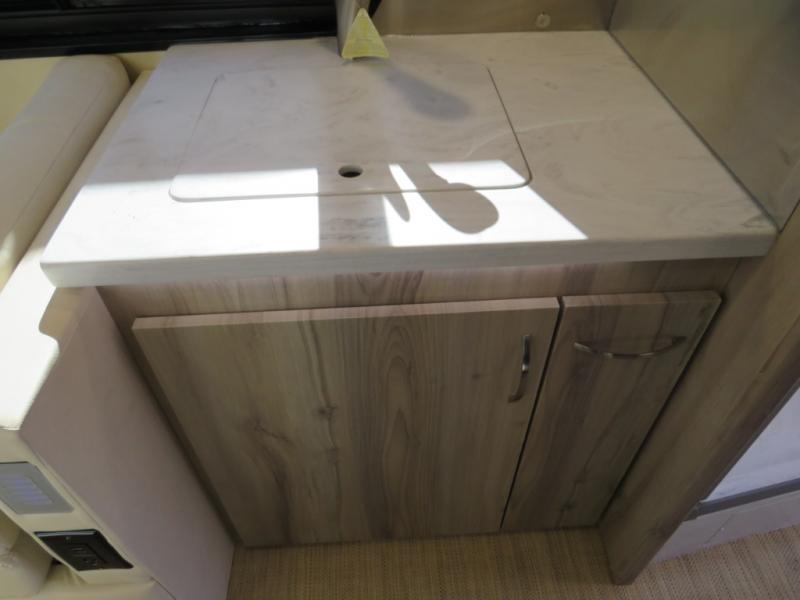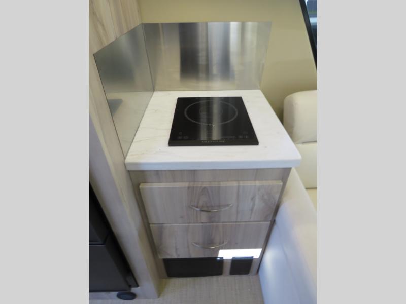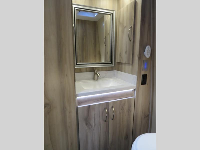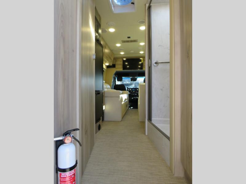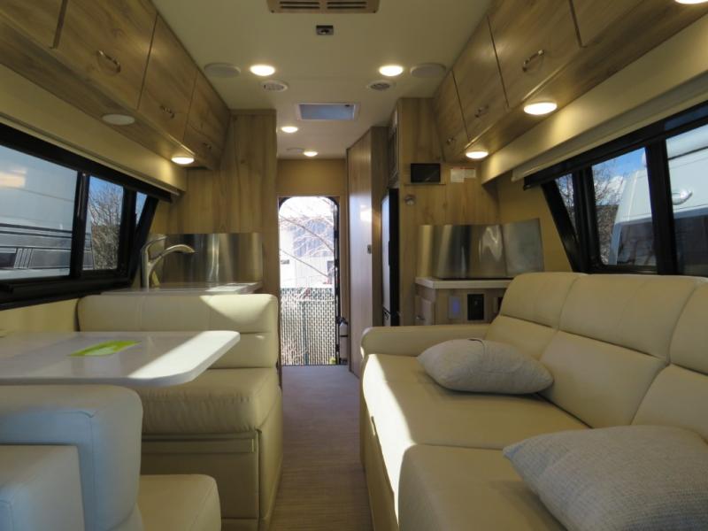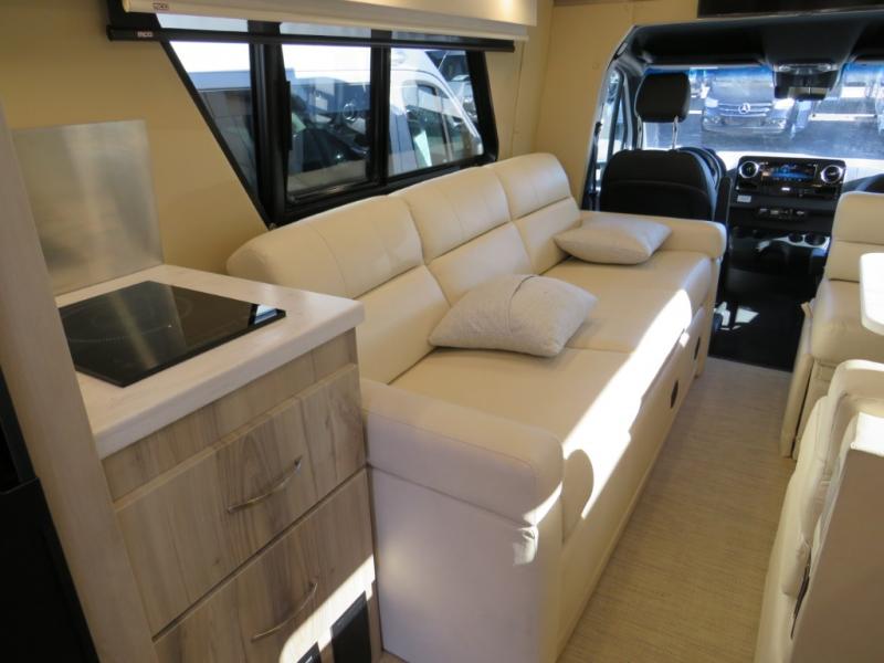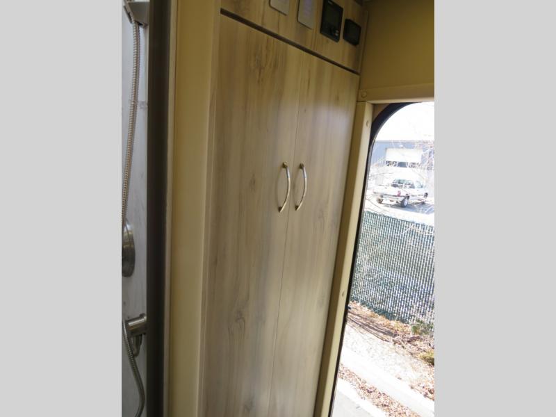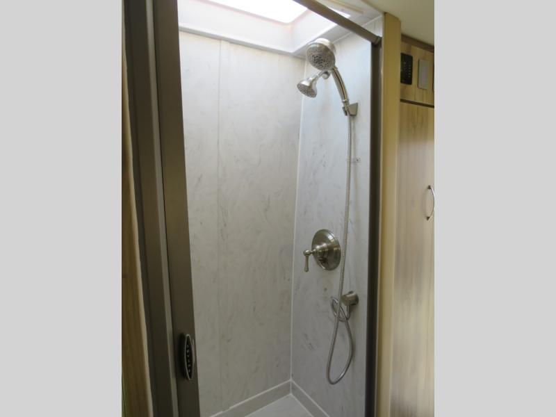 Hit the road in true luxury with this motorhome! The separated bathroom makes it convenient for one to use the private toilet and sink while another cleans up in the 39" x 29" shower. There is also a wardrobe to keep your towels close by and a powered vent fan for ventilation with a rain sensor and reversible functions. This model includes a single sofa and a booth dinette that can convert to a 76" x 84" bed for a great night's rest. You can prepare delicious home cooked meals with a single induction cooktop which can be removed for exterior cooking, a Dometic 6 cu. ft. dual-swing motion doors refrigerator to store any leftovers, and a 1.1 cu. ft. stainless steel convection microwave to heat them up. The Entertainment Center package not only includes a 32" Samsung TV, but also a high performance JBL by Harman Aura in-wall media center with a JBL sub-woofer and JBL 6.5" Coaxial ceiling speakers.