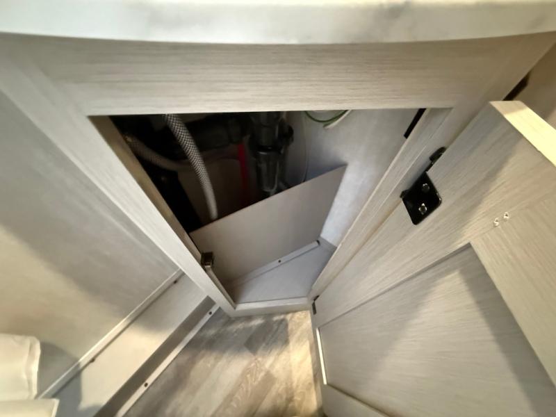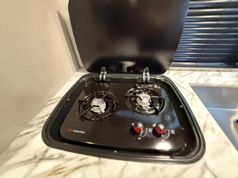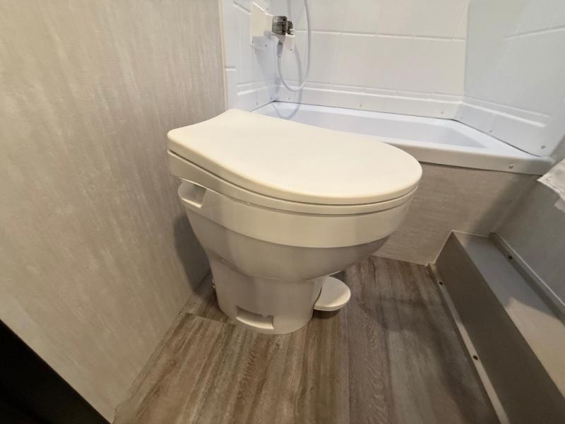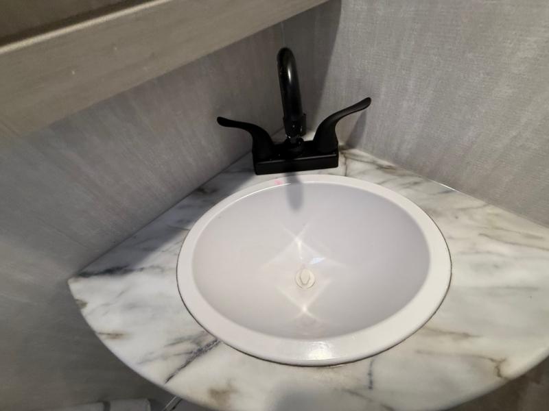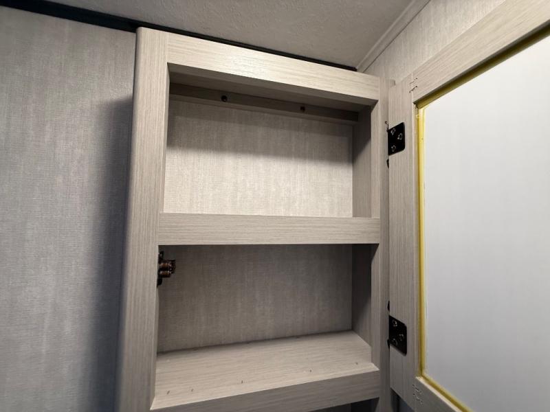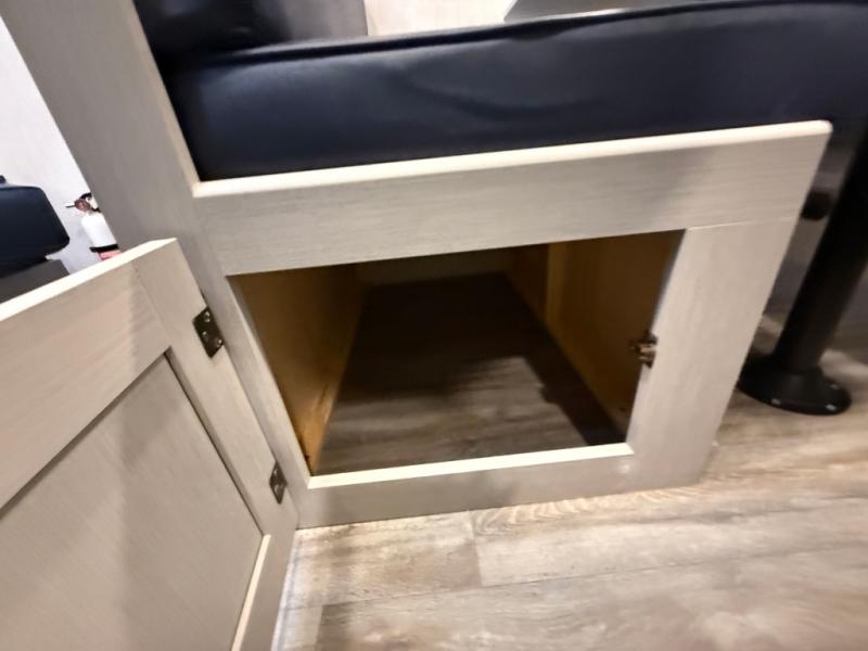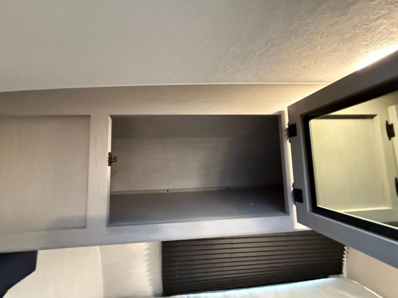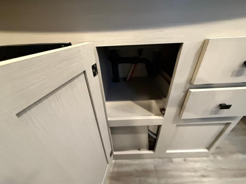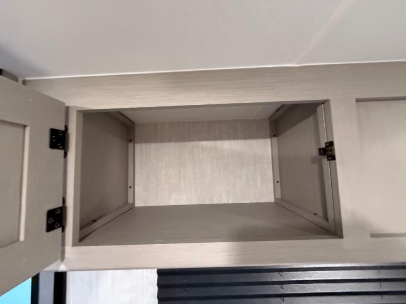 This travel trailer offers versatility with a front Murphy bed! Depending on what time of day you enter the unit will determine whether you see the bed or the sofa. There is a rear corner double bed bunk above a lower flip up double bed and a booth dinette that can transform into an extra sleeping space when you're not using it to enjoy a meal or play a card game. Everyone can stay clean with tub/shower in the rear corner bathroom and keep their bellies full with the two burner cooktop and 8 cu. ft. 12V refrigerator. You can even cook outdoors with the exterior camp kitchen while staying protected by the power awning with LED lighting!