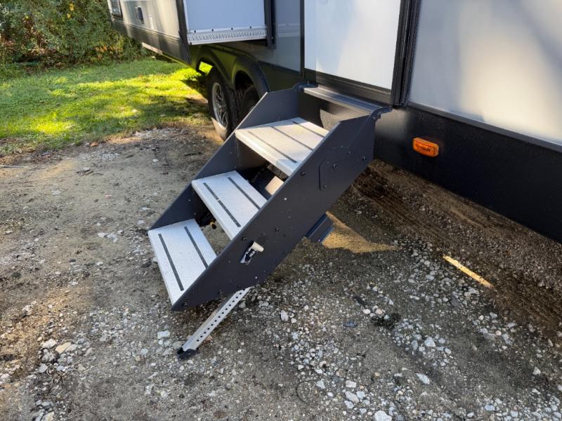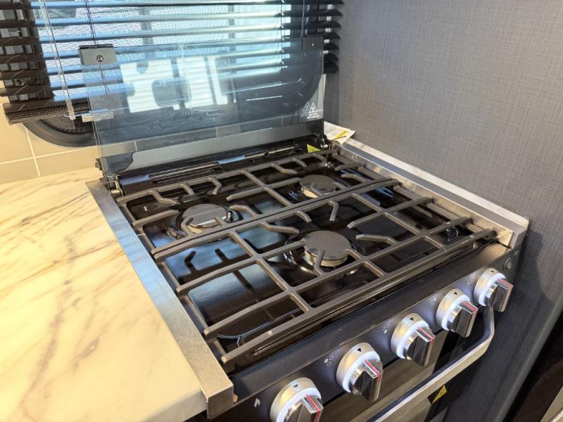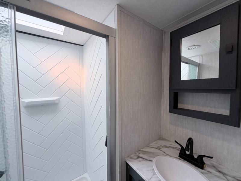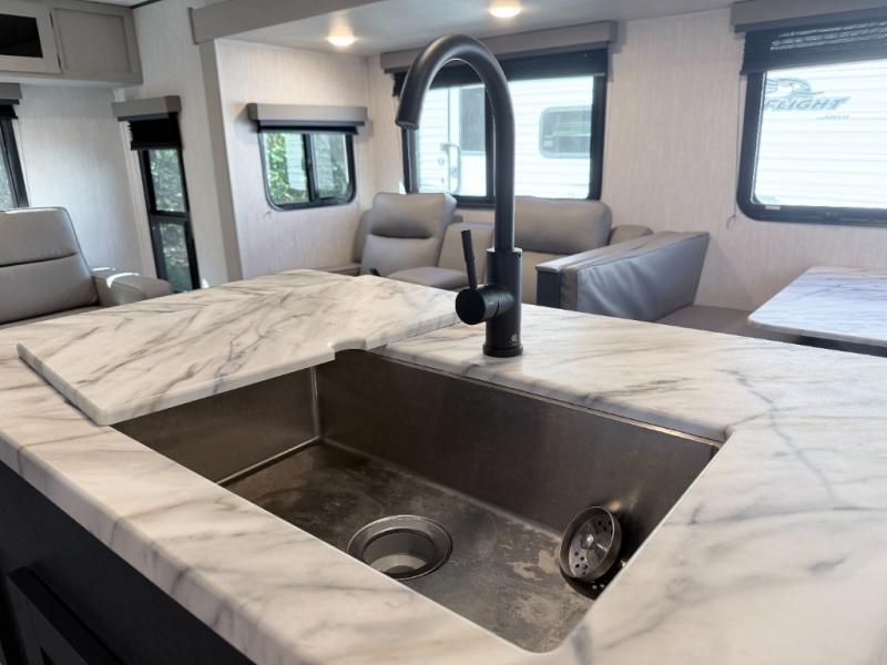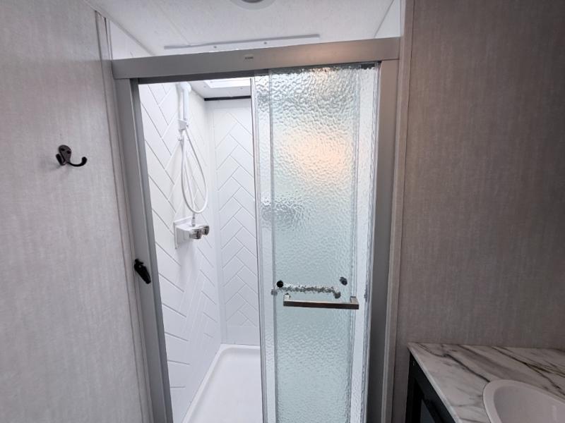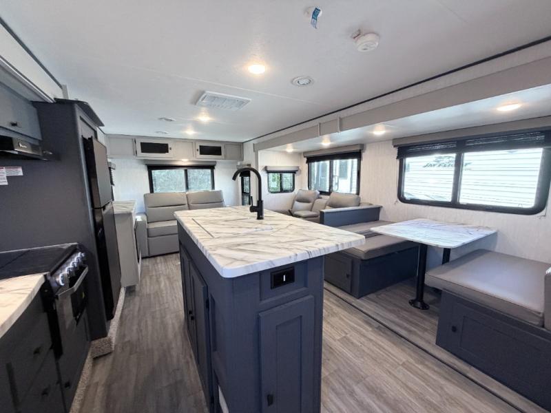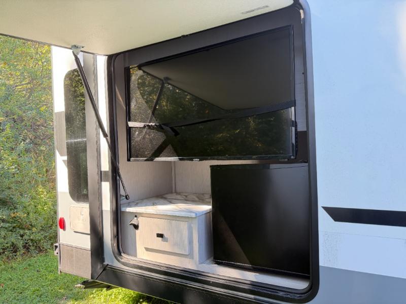 Enjoy a spacious, residential-style camping experience in the Apex Ultra-Lite 293RLDS. Dual opposing slides open up the living and kitchen area for maximum comfort, while the theater seating offers a perfect view of the entertainment center and fireplace. The kitchen island, large hutch, and 8 cu. ft. 12V refrigerator give you everything you need to prepare meals with ease. A front private bedroom with a queen bed and dual wardrobes creates a relaxing retreat at the end of each adventure.