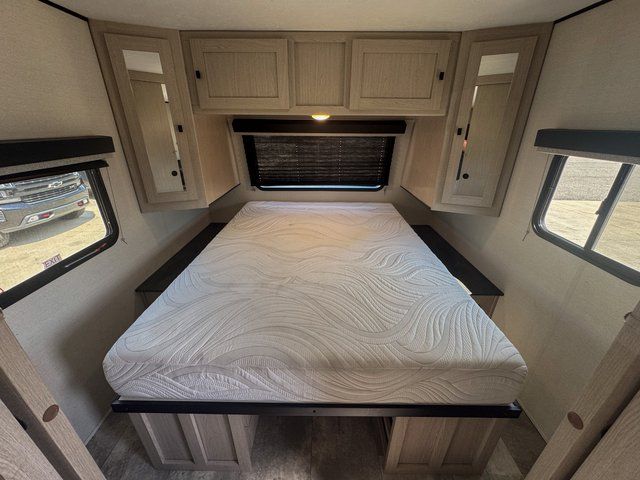 Lightweight living and camping is found with the Apex Ultra-Lite travel trailers by Coachmen. These eco-friendly units are made to last thanks to the Azdel composite sidewalls, the laminated aluminum floor, and the vacuum-bonded laminated crowned roof. Easy lube axles make towing easier than ever, plus there is a friction hinge entrance door, a 200-watt solar panel with a 30 Amp control charger, and slam latch baggage door catches for easy unloading. Some of the interior comforts you'll fall in love with are the one-piece seamless edge countertops, the hard valances with night shades, the matte black hardware, and the Casino Bisque cabinetry. The Apex Ultra-Lite trailers also include USB ports, a digital TV antenna with cable hook-ups and Wi-Fi capability, and a 13.5K BTU A/C to keep you comfortable all summer long!