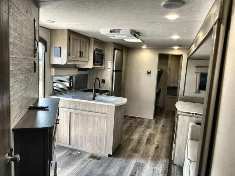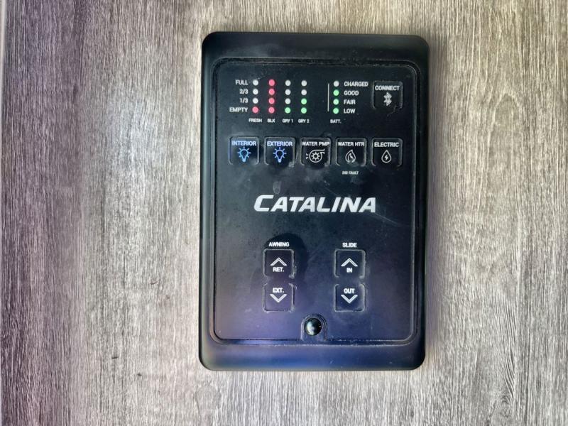 Each Catalina Legacy travel trailer by Coachmen is constructed with a cambered structural steel I-beam frame for added strength and support, plus an enclosed and fully sealed corrugated underbelly to extend your camping season. There is also a seamless Alpha room membrane, R-7 insulation throughout, full length frame outriggers, plus many more durable construction materials. You will love the 6' 9" interior height, along with Congoleum woodplank linoleum flooring, seamless Thermofoil countertops, and hard valance window treatments. There is an RV-Link 4G LTE connectivity with WiFi booster and an extender to keep you connected to the outside world as you camp, and the JBL Aura cube multi-zone function media center is sure to keep you entertained all weekend long. Choose a Catalina Legacy today!