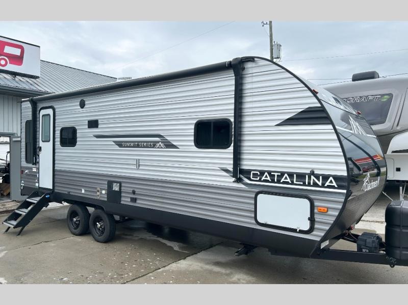 With any Catalina Summit Series 8 by Coachmen you will enjoy an affordable travel trailer packed with at-home comforts! The solid construction includes a Norco electromagnetic powder coated chassis, a seamless Alpha roof membrane, and full length frame outriggers for maximum support and durability. Dexter EZ lube axles with leaf spring suspension and self adjusting brakes provide smooth towing from home to campground, and the premium exterior graphics package is sure to turn heads as you travel down the highway. You will love the features included, such as a JBL Aura Cube media center, magnetic baggage door latches, 4,000 lumen interior touch lighting, LCI One Control, and the list goes on!