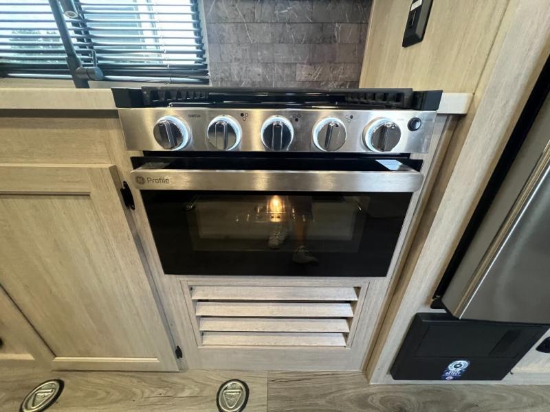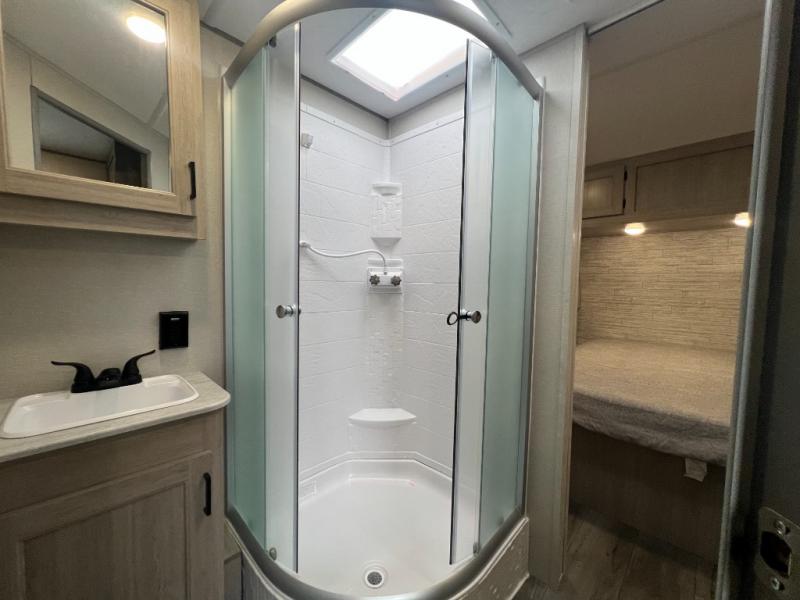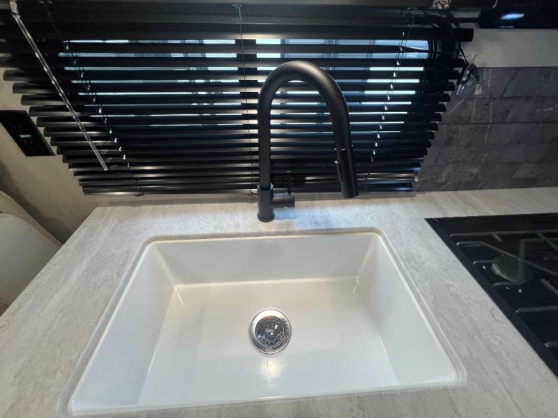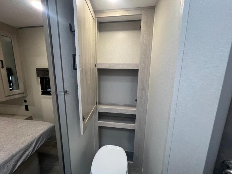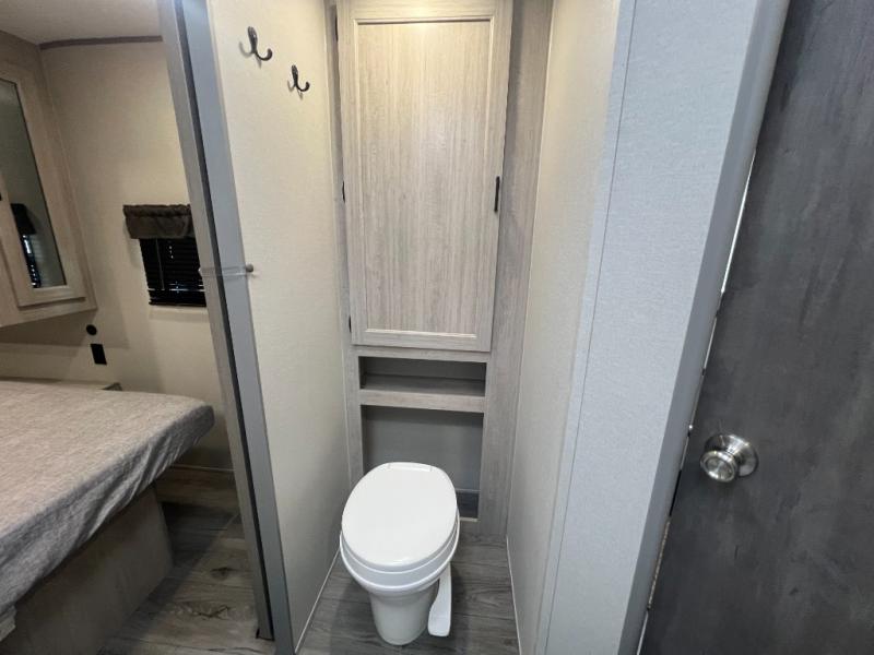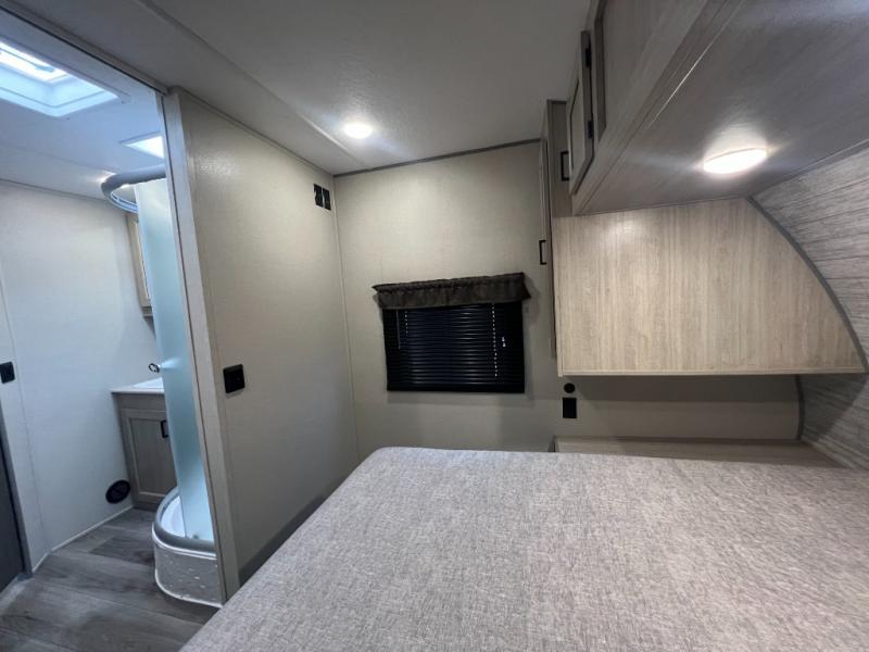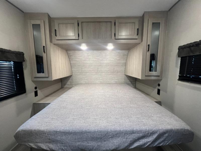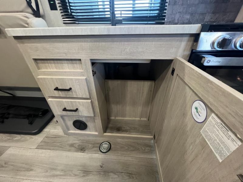 The best looking, most affordable toy hauler is found in the Catalina Trailer Blazer by Coachmen. Each one is constructed with a seamless alpha roof membrane, an enclosed and fully sealed underbelly, and a cambered structural steel I-beam frame for added support. There is a rear loading cargo door with a 3,000 lb. capacity, a black out screen wall with a zip walk-thru and windows, plus 500 lb. tie-downs to secure your toys. You'll love the interior with its Congoleum woodplank linoleum flooring and LED interior lighting. Head outside to find an electric awning with multicolored LED lights and a remote, a 15' Toy Loc cable, a "Leash Link" quick hookup D-ring for pets, and upgraded aluminum wheels. The Catalina Trail Blazer also comes with RV-LINK 4G LTE connectivity with a WiFi booster and extender, a JBL Aura Cube media center, plus premium JBL interior speakers for your pleasure!