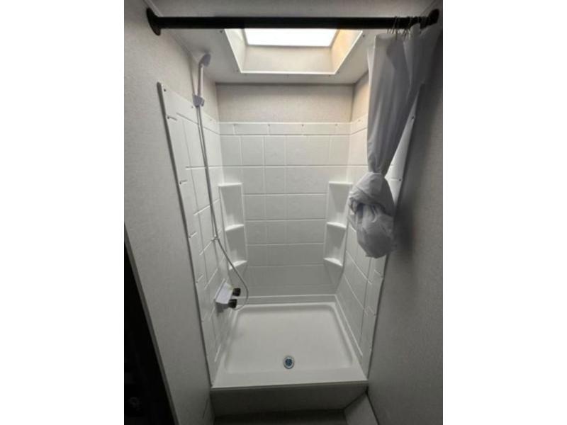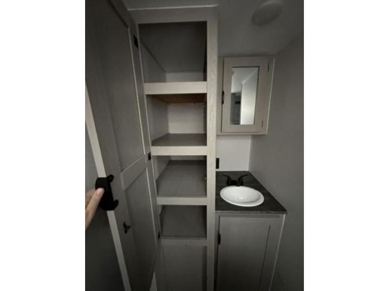 Take this versatile couple's travel trailer to your favorite destinations! It features a front jackknife sofa "Murphy Bed" for you to have ample seating during the day and at night a comfy bed. There are also two wardrobes with a private shelf on each end and an overhead shelf above for your things. There is additional seating with two recliner chairs including a table between opposite the kitchen area. This space also features overhead storage. The full rear bath offers a 24" x 36" shower, sink with medicine cabinet and linen storage as well. You can easily cook simple camp meals using the two burner cooktop or the microwave. On the exterior, a front pass-through storage compartment is available for all of your outdoor gear!