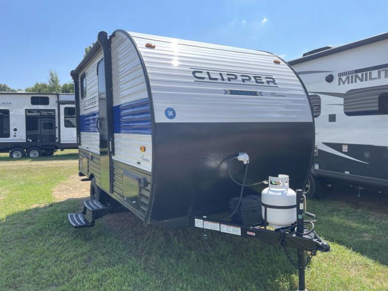 Any Clipper Cadet travel trailer by Coachmen RV provides you a lightweight and easy to maintain towable for your small truck, SUV, or mini-van. All Cadet campers are under 3,000 lbs. and are just 7' wide making them easy to tow, and easy on your pocketbook. These are perfect units for first time owners making the leap from tent camping to their first RV. With BAL NXG Frame and HUCK Bolt assembly, and a seamless one-piece TPO roof membrane, your Clipper Cadet will provide you years of use. You will appreciate the extended height diamond plate protection to keep road debris from damaging your unit, and two rear stabilizer jacks keep you stable in camp. Jumbo pass-through storage allows you to take along the gear that you need, and all of the interior features will have you enjoying your camp experience to the fullest. Make the leap today and choose your favorite Clipper Cadet travel trailer!