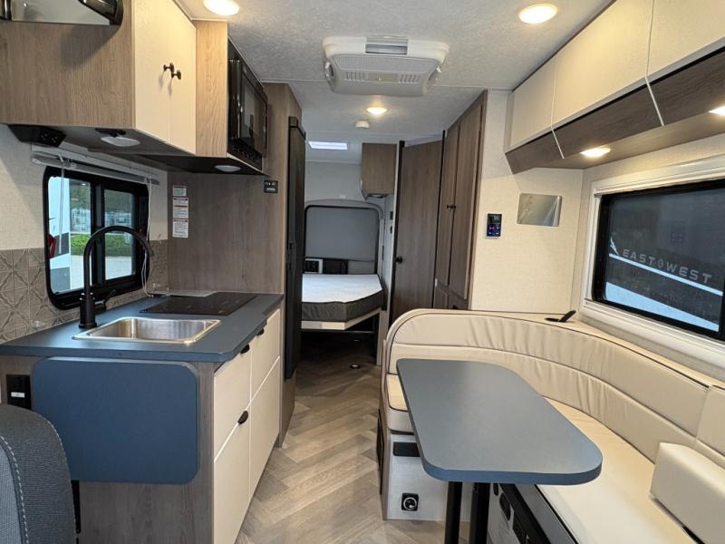 The Cross Trail EV Class C gas motorhomes by Coachmen offer livable and storage friendly coaches with an interior/exterior Smart TV, extra large kitchen counters, and large sliding tinted windows. Also included is the Renogy Empowered state-of-the-art hybrid electrical system designed to operate every coach function from battery power, including the A/C, and is convenient for operating systems while traveling without the use of a generator. Each has a fuel-friendly Ford transit chassis, Azdel composite vacuum bonded sidewalls, and a CrossFlex roof membrane, providing more puncture resistance. And the available all-wheel drive means you can go off the beaten path if you choose that option!