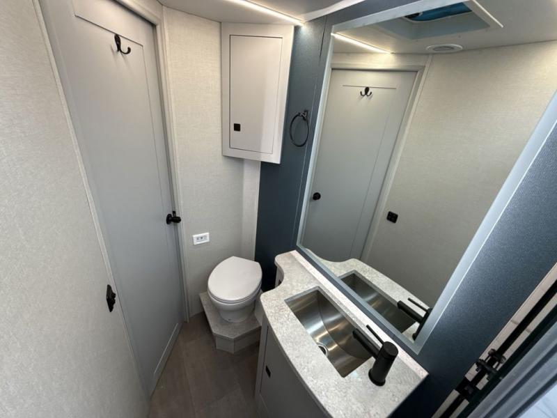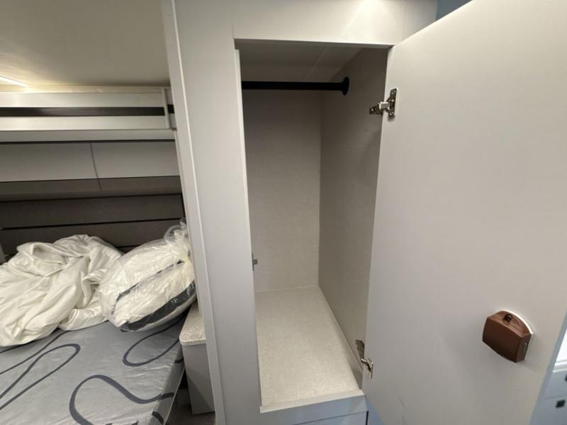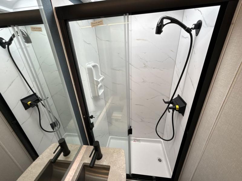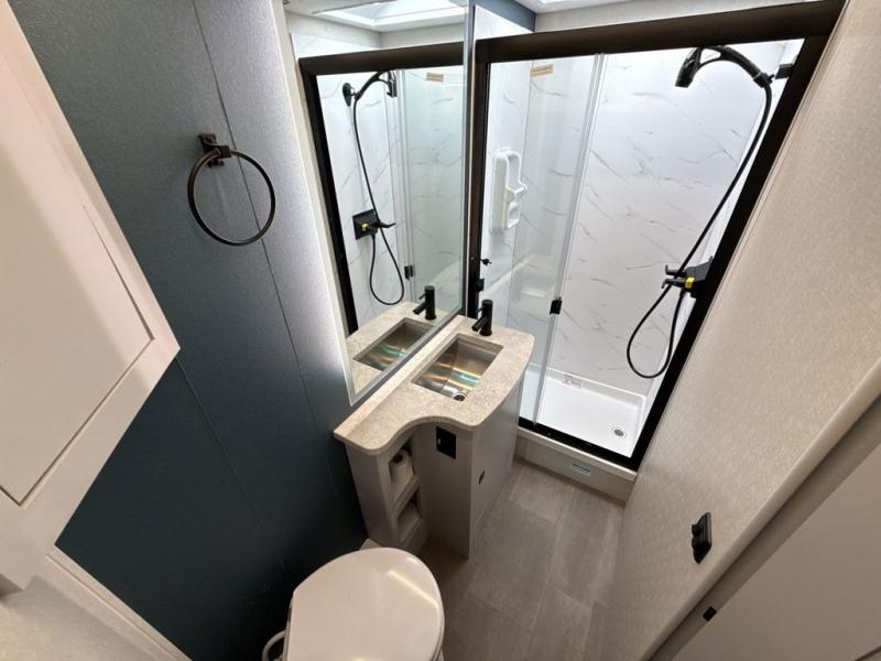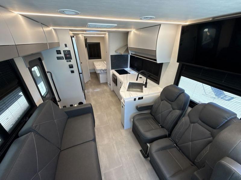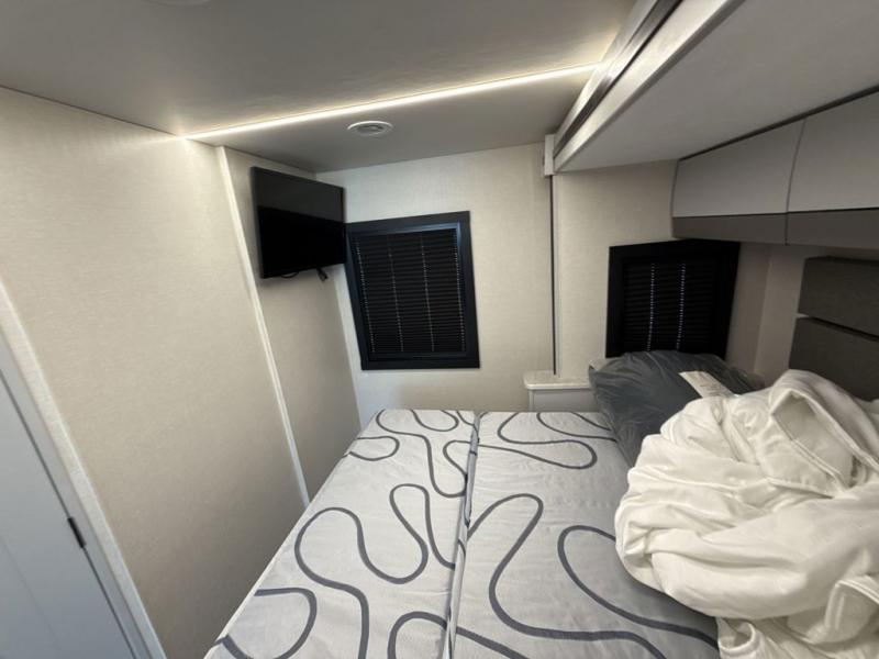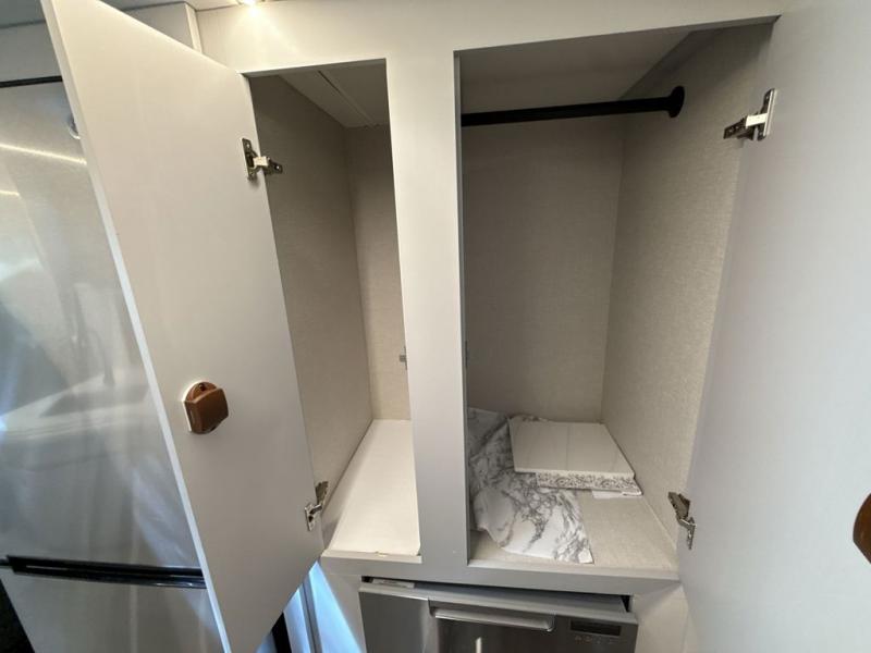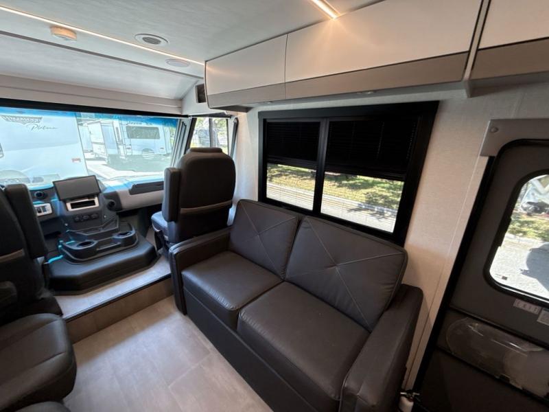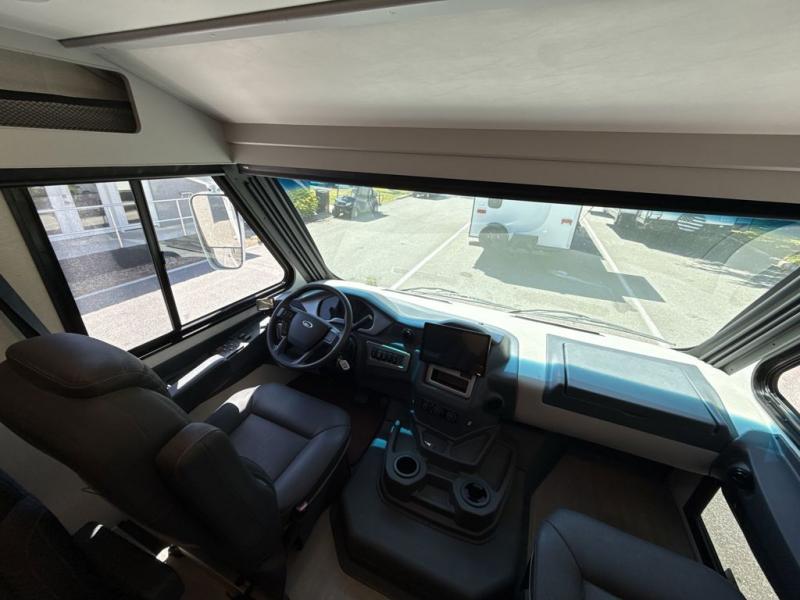 Come see why this coach was voted the Type A Gas Motorhome of the Year for 2024 by RV News and the 2024 Top RV Debut by RV Business! Once you arrive at your destination, the reclining/swivel pilot seats can become a part of the living area where your crew is relaxing on the sofa and two chairs with a table. You'll find an induction cooktop in the kitchen to prepare meals, plus a stainless steel double door refrigerator and a pantry to hold food for the whole week. A king bed slide out in the rear corner bedroom will have you feeling right at home, and there is a bedroom TV to watch movies in bed plus power outlets on both sides of the bed to charge your phone at night. Having a full bath onboard is sure to come in handy, especially with its glass shower door, skylight, and on-demand water heater. This model also includes two closets, one with washer and dryer prep to keep your clothes wrinkle-free plus more storage space throughout for camp gear and necessities!