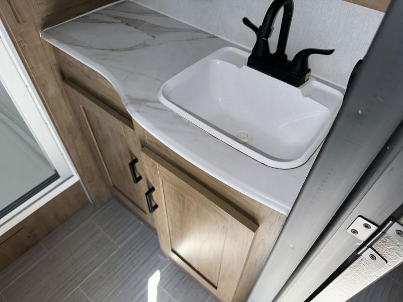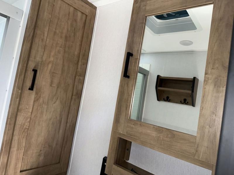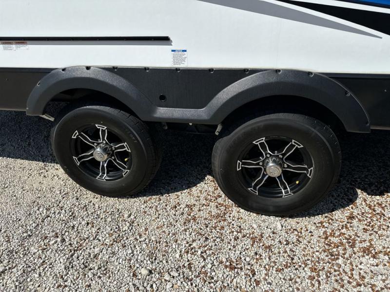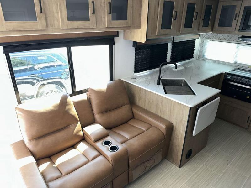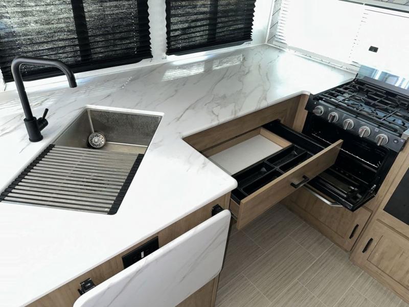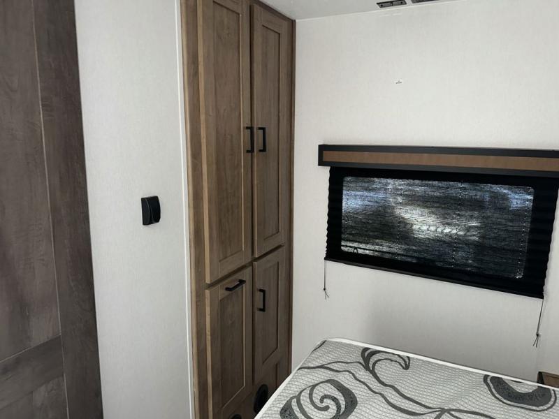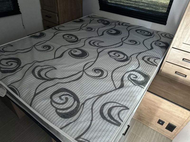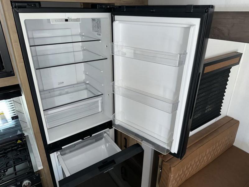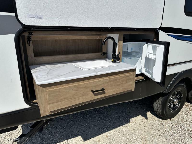 Are you looking for a travel trailer that will feel more like home? Look no further than this model that features a private bedroom up front, a full bath, plus a spacious rear kitchen. You will love to relax on the theatre sofa/hide-a-bed sofa across from the Smart TV and fireplace, and there is a booth dinette for dining. This model also includes a hidden pantry behind the TV for smart storage solutions. If the weather is nice you may just want to sit outdoors under the 18' power awning with LED lights. The chef of your group can prepare a meal on the pull-out camp kitchen, and the kids can grab their scooters from the pass-through storage.