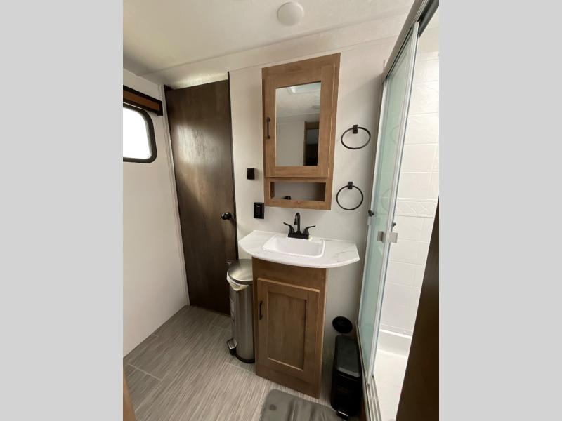 With any Freedom Express Ultra Lite travel trailer by Coachmen you will appreciate quality construction materials, such as vacuum bonded walls with Azdel composite, a 3/4 gel coated fiberglass cap with an automotive glass windshield, and a heated enclosed underbelly. Each model also features Tufflex PVC roofing, front rock guard, and E-Z Lube axles for smooth towing. Inside, you'll find kitchen backsplash, hidden hinge cabinetry, and wear-resistant vinyl flooring throughout. The power tongue jack included with the Ultra Lite Express Pack will make set-up a breeze, and each model includes back-up camera prep and they are Freedom solar ready if you plan to go off-grid. Enjoy lightweight camping with a Freedom Express Ultra Lite travel trailer today!