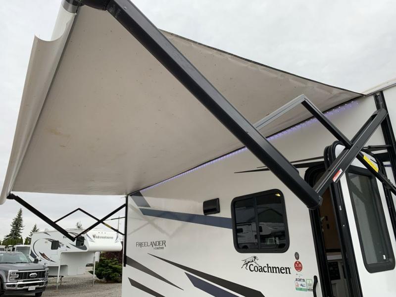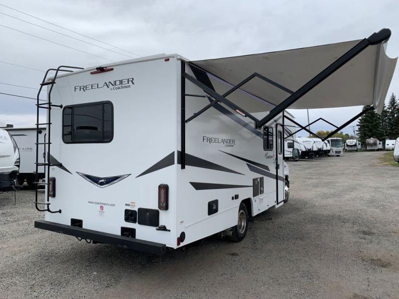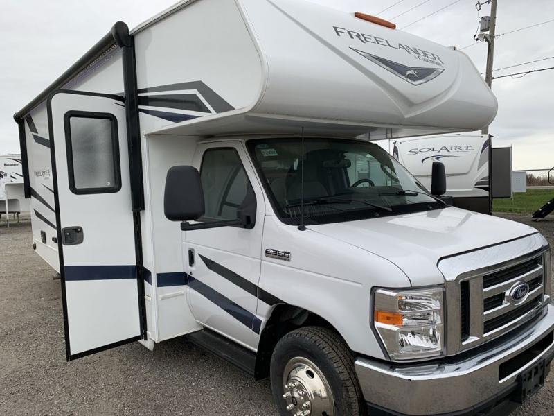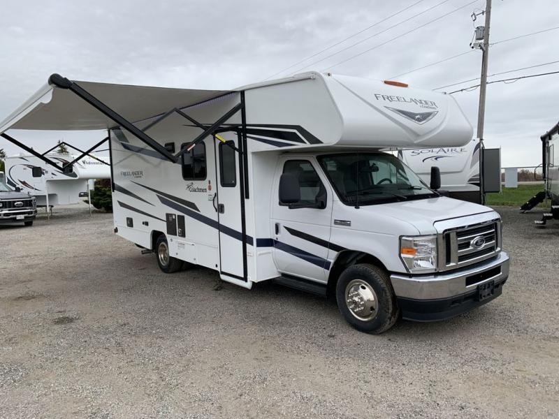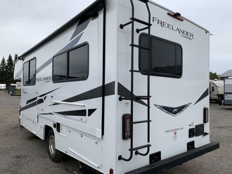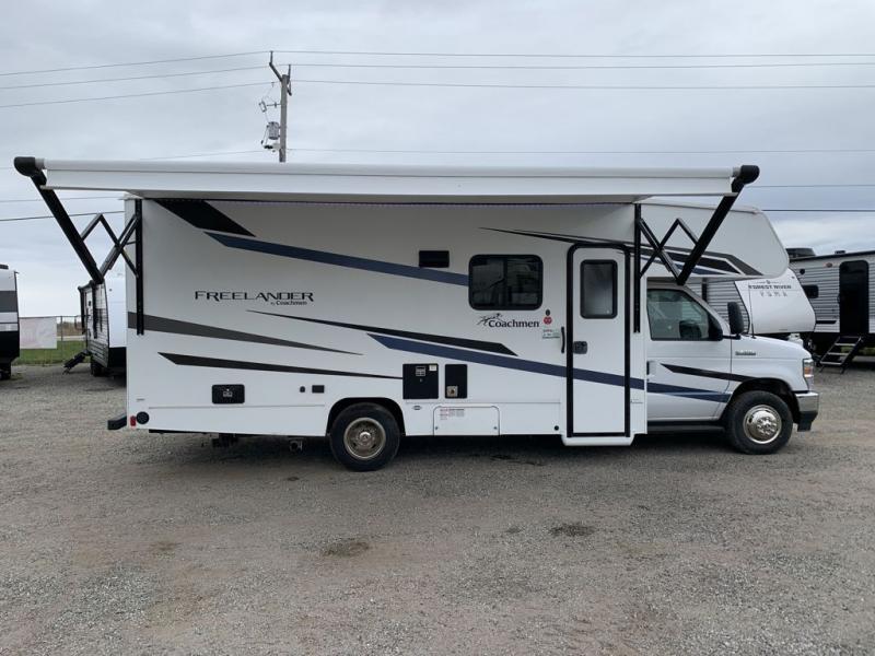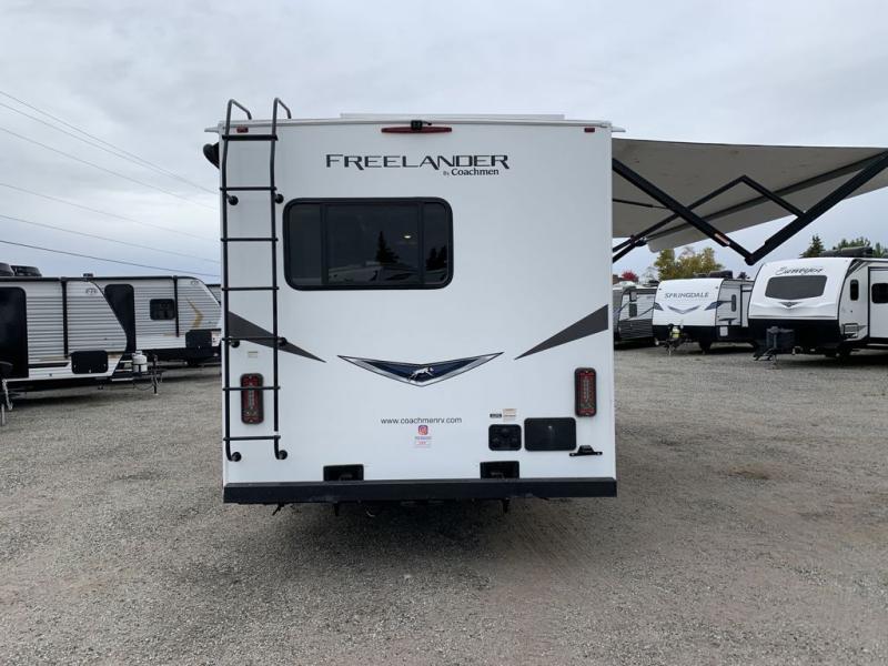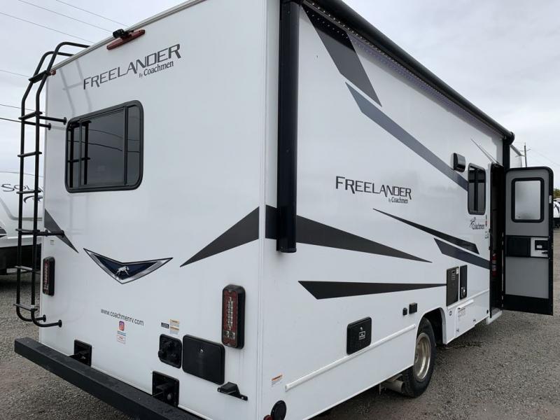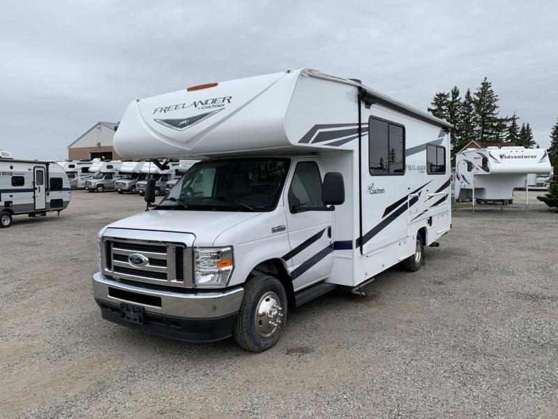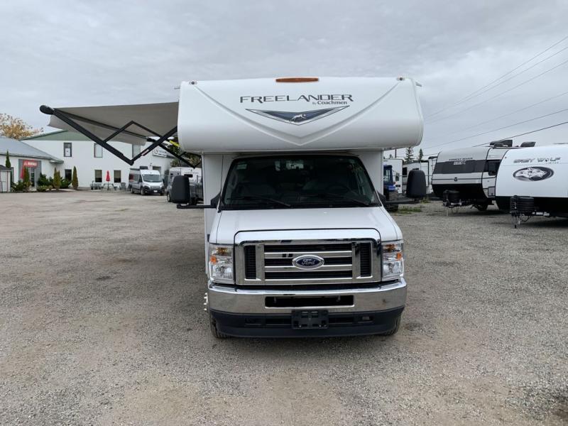 The Freelander Class C gas motorhome by Coachmen is a wonderful choice for anyone looking to get out on the road. A wide variety of floorplans and features offers something for everyone. The Azdel composite sidewalls and seamless one-piece roof membrane provide a solid structure to enjoy all your trips. Conveniences like storage above entrance door with an HDMI and charge station and reclining cockpit seats are standard, along with a rear color backup camera, a premium showerhead and faucet, and one-piece thermofoil countertops. The mandatory Explorer Package includes an exterior shower to rinse off before entering inside and an on-demand tankless water heater for hot water fast. Come find your favorite one today!