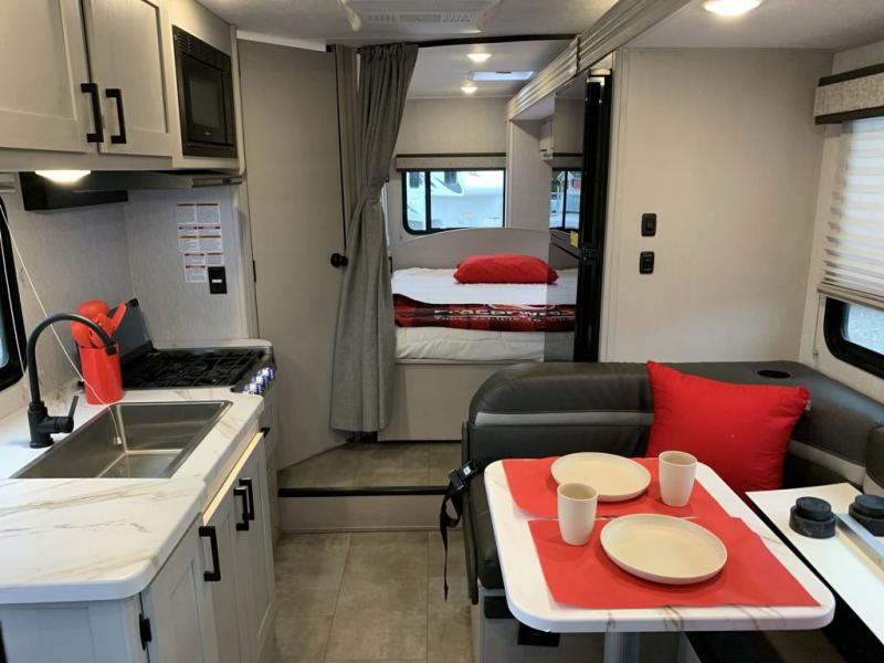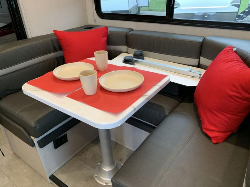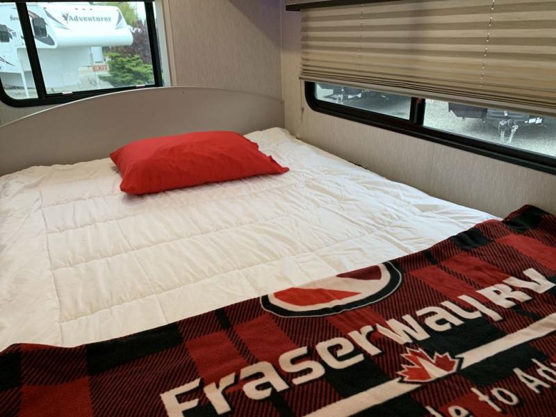 Enjoy a great escape in this motorhome! With a 60” x 80” queen bed and a 57” x 95” bunk over the cab, there’ll be plenty of space for everyone. Eat your meals at the spacious U-dinette or use it to spread out and play a board game once the dishes are cleared away. The kitchen rivals your home setup with a pantry, residential microwave, and stainless steel farmer's kitchen sink with a high-rise kitchen faucet. More storage is available in the bedroom with wardrobe shelves and a roomy underbed storage area. This model also includes the CRV Supersprings Ride with heavy duty stabilizer bars, chassis electronic stability control, SumoSprings front shock absorbers, and more!