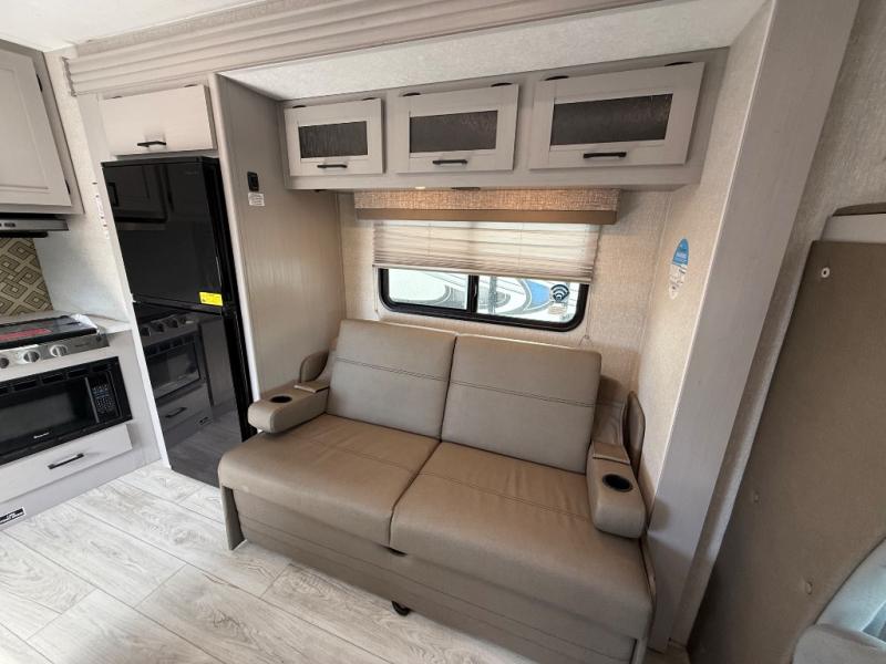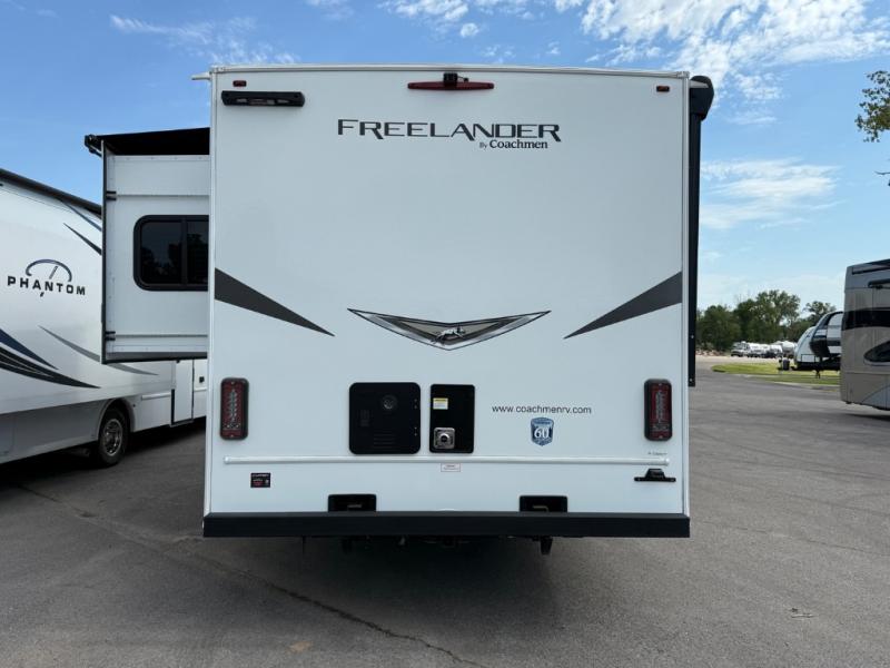 The Freelander Class C gas motorhome by Coachmen is a wonderful choice for anyone looking to get out on the road. A wide variety of floorplans and features offers something for everyone. The Azdel composite sidewalls and seamless one-piece roof membrane provide a solid structure to enjoy all your trips. Conveniences like storage above entrance door with an HDMI and charge station and reclining cockpit seats are standard, along with a rear color backup camera, a premium showerhead and faucet, and one-piece thermofoil countertops. The mandatory Explorer Package includes an exterior shower to rinse off before entering inside and an on-demand tankless water heater for hot water fast. Come find your favorite one today!