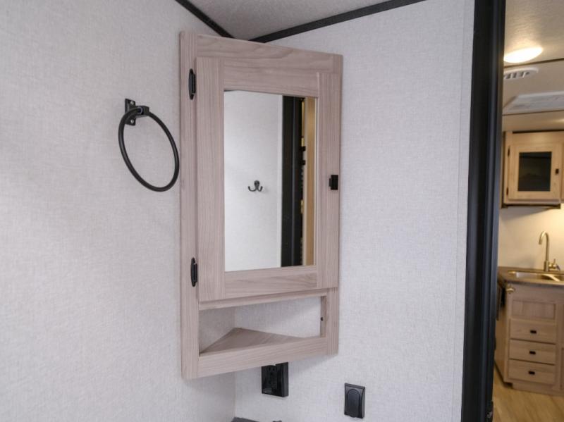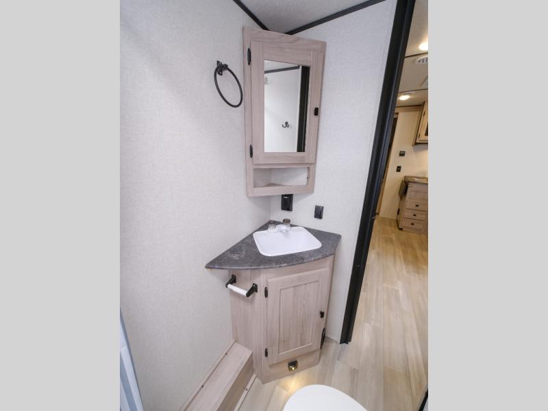 With any Northern Spirit Ultra Lite travel trailer by Coachmen, the "Twice Cool" dual ducted air conditioning system, the motion activated floor lights in the bedroom and bathroom, the lighted USB ports, the digital level, and the motion activated pass-through storage light plus fishing pole storage, will make your camping experience simplified. The heated and enclosed underbelly provides protection on the road and allows you to camp during any season, the 200W solar panel with 30 amp controller provides off-grid camping, and the power tongue jack makes setup easier. Each is built with a 3/4 painted fiberglass front cap with LED strip lights, a laminated, aluminum framed floor, rear wall, and sidewalls, plus 5" trusses with an interior vault. Make your decision today, and camp with everything in its place!