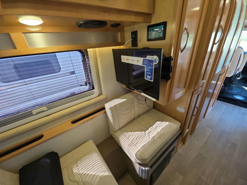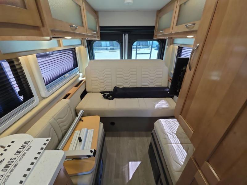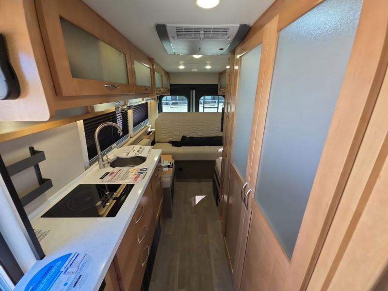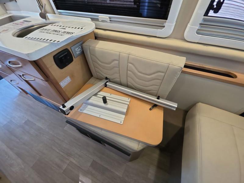 Grab your honey and head to your favorite camping spot in this cozy camper van. Once you park for the day, you can swivel the captain's seats around and enjoy coffee at the removable cockpit table. Lunch can be made on the induction cooktop, and the cold ingredients can go back in the 7.3 cu. ft. refrigerator. The convenient wet bath allows you to freshen up after a hike, and the rear lay-flat power sofa will provide comfortable sleeping space when you're ready to turn in for the night. There are also two jump seats and a lagun table if you want to say up and play a game of cards!