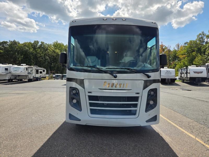 Pursue big dreams with one of these Coachmen RV Pursuit Class A gas motorhomes! The high gloss dove grey sidewalls with Azdel superlight composite, fiberglass front cap, and crowned, laminated TPO roof will hold up for years to come. A Ford F53 7.3L V8 engine propels your unit with an abundance of power to each destination. Stay warm in the cooler months with a 30,000 BTU furnace and stay cool in the warmer months with a single 15,000 BTU A/C or dual 15,000 BTU A/C units, depending on the model you choose. All of your extra gear can easily be stored in the spacious exterior storage compartments to keep from taking up space on the inside. The exterior propane hook-up will come in handy and some models even have an outside entertainment center with a TV. Come find the right one for you today!