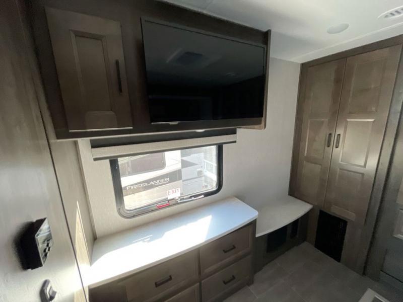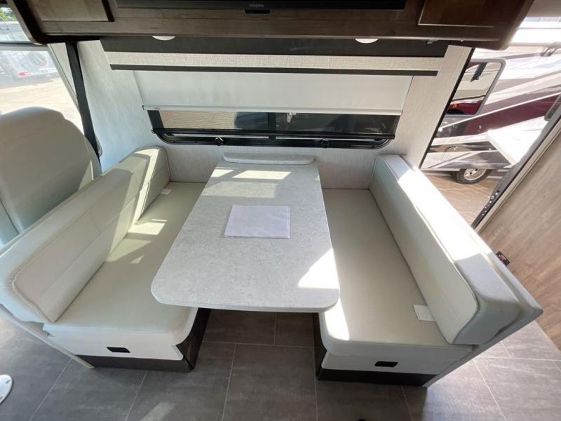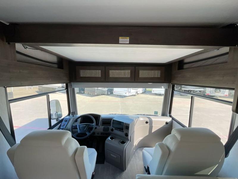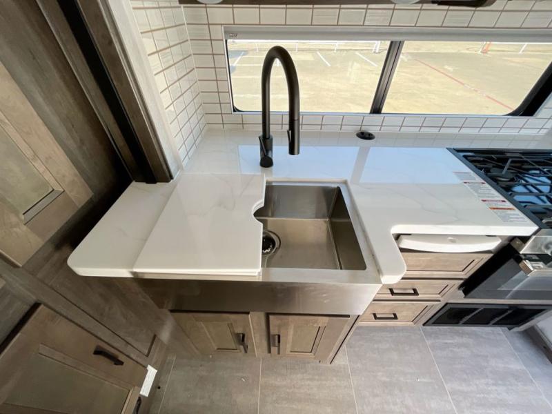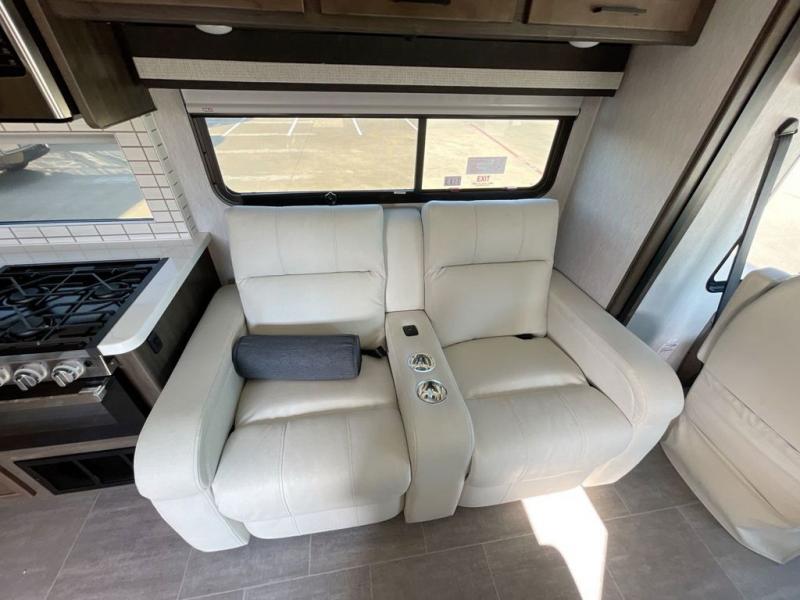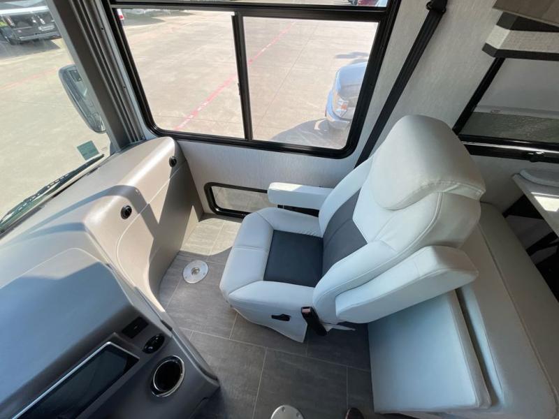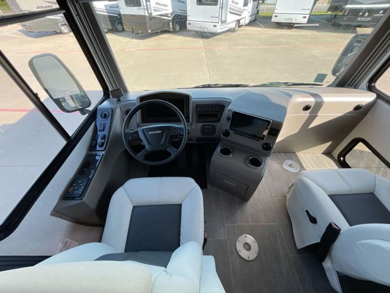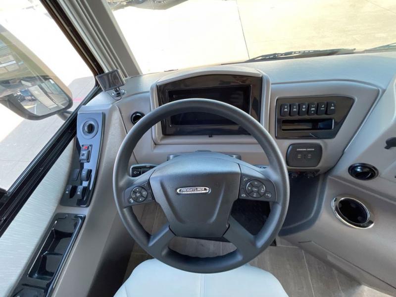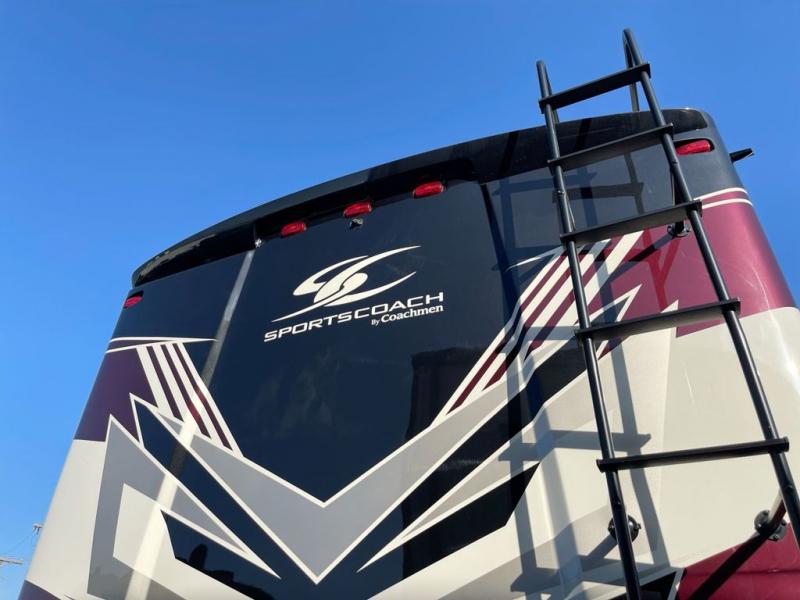 The Sportscoach SRS Class A diesel motorhome by Coachmen sits on a straight rail Freightliner chassis with a 340 HP ISB Cummings rear diesel engine that will deliver power to your excursions. Each coach features chassis air suspension and air brakes, an 8,000 lb. towing hitch, and an outside entertainment center with a 40" TV to watch the big game outdoors. Some of the electrical, heating, and AC amenities you will appreciate are the 6.0 kW diesel generator, the 100 watt solar panel with a controller, and the two 15,000 BTU A/C units. The galley features convenient pop-up recept with USB ports, stylish kitchen backsplash, and a stainless steel farmhouse style sink that will make clean-up easier than ever. Comfort will come easy with the upgraded mattress in the bedroom, along with a residential style headboard and a king bed. Affordable, powerful, and comfortable; what's not to love about the Sportscoach SRS Class A diesel coach!