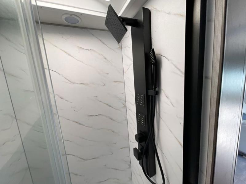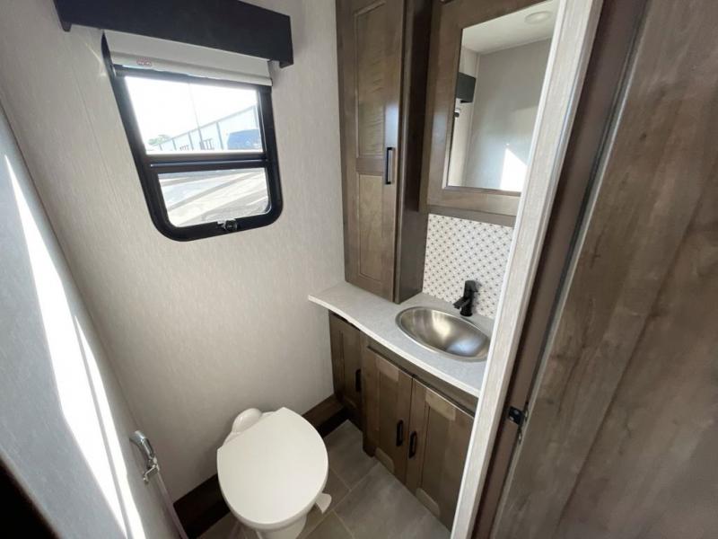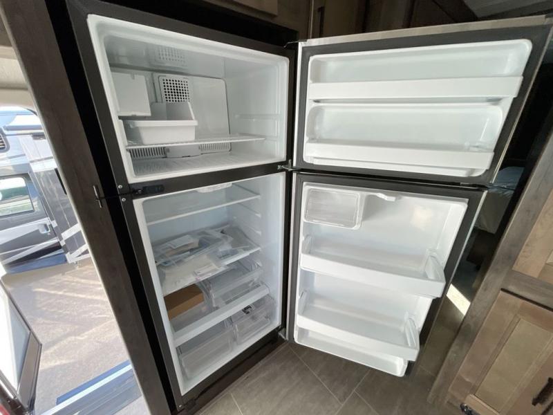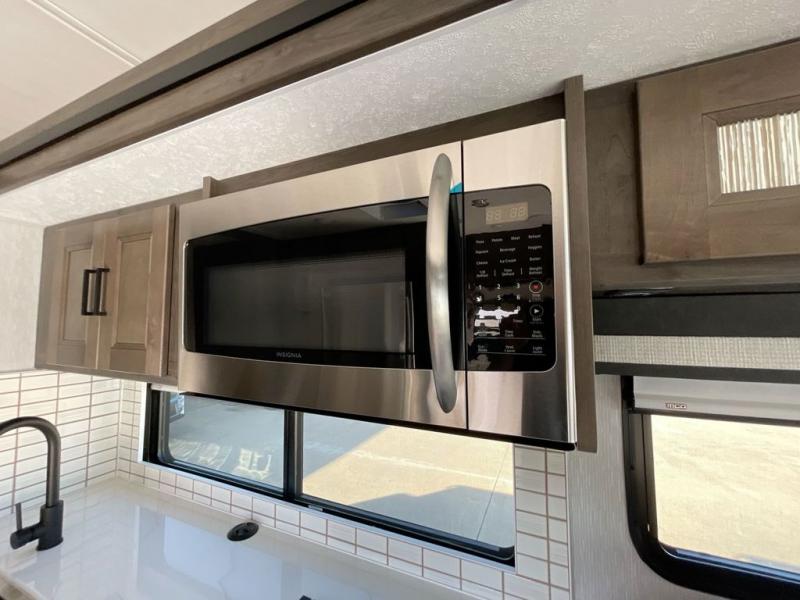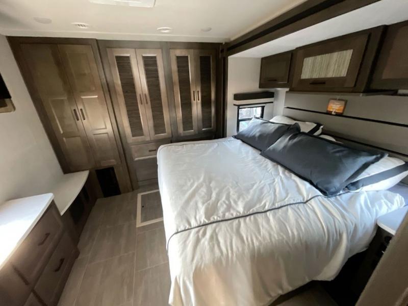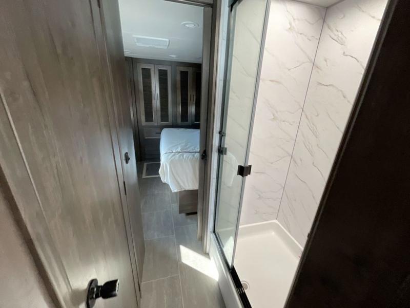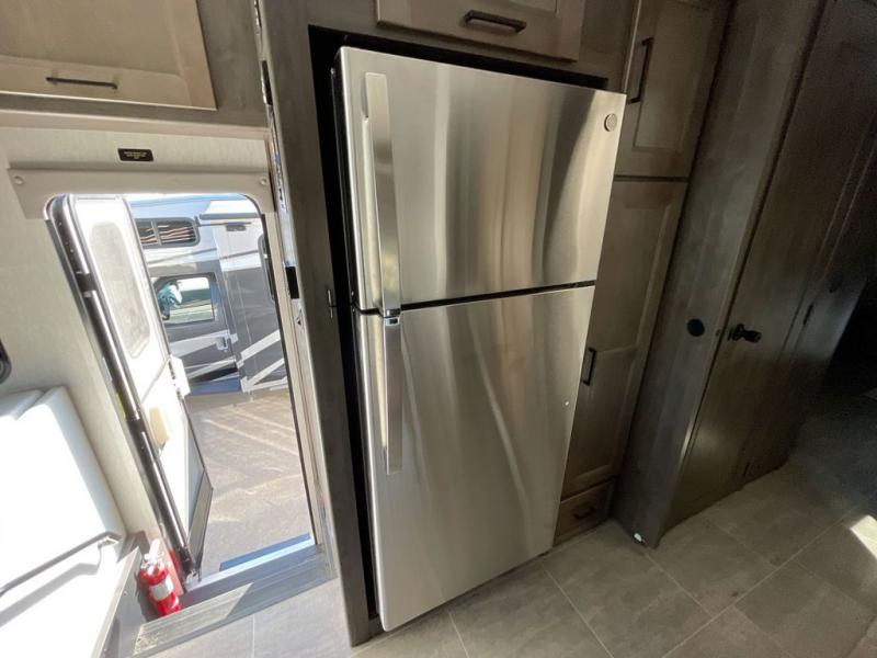 This double slide out coach is ready for adventure when you are! The oval cockpit table with cupholders will provide a place to enjoy your morning coffee at, and there is a booth dinette where you can dine together before you start your day. There is theatre seating directly across from the 40" LCD TV to watch your favorite shows, and you'll find plenty of overhead compartments for your valuables. The kitchen is packed with everything you need, including a three burner range, a 30" stainless steel over the range microwave, plus a stainless steel residential refrigerator. And take a look at the stylish farmhouse sink and two pantries! This model includes a private toilet and sink, with the shower across the hall so two people can freshen up at once. The rear private bedroom will feel just like home with its king bed slide out, two wardrobes, a 32" LCD TV, plus a convenient CPAP station. This coach is also washer and dryer ready, so plan to stay awhile!
