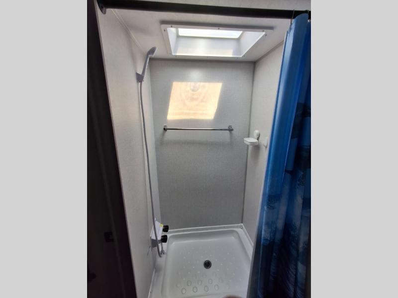 At night, drift off on a front queen bed or convert the dinette for added sleeping space. The rear bathroom's full amenities, including a roomy shower, add comfort without compromise.