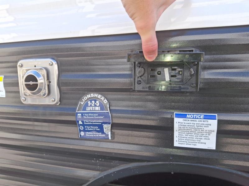 Inside, the Camping Made Easy package ensures your comfort from sunrise to stargazing—stay cool with the 13.5K BTU A/C, warm with the 20K BTU furnace, and shower hot with the electric tankless water heater. The indestructible power awning with LED lighting and adjustable legs turns any campsite into an outdoor living room.