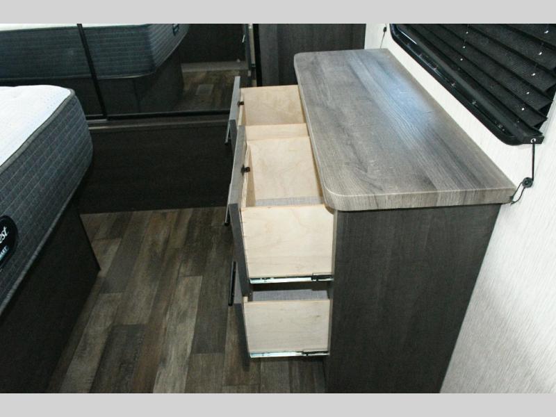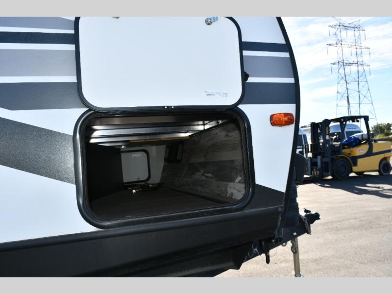 • Pass-Through Storage with Magnetic Slam Latch Doors for all your camping gear