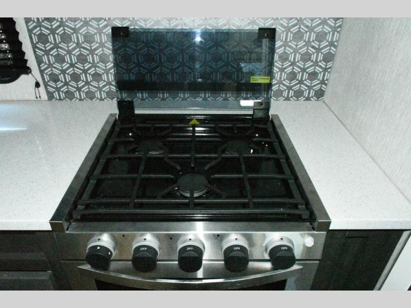 • 21" Gas Oven with Glass Cover and 30" Over-the-Range Microwave for versatile cooking