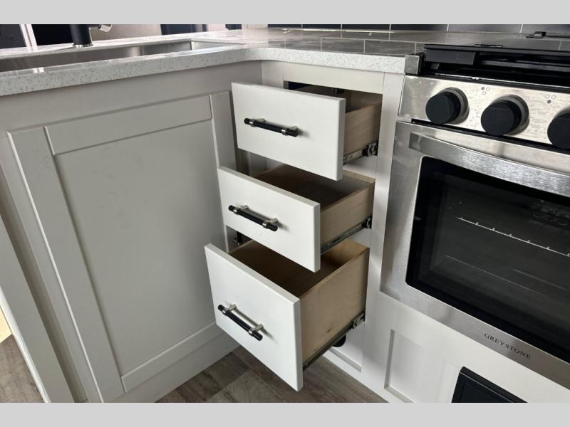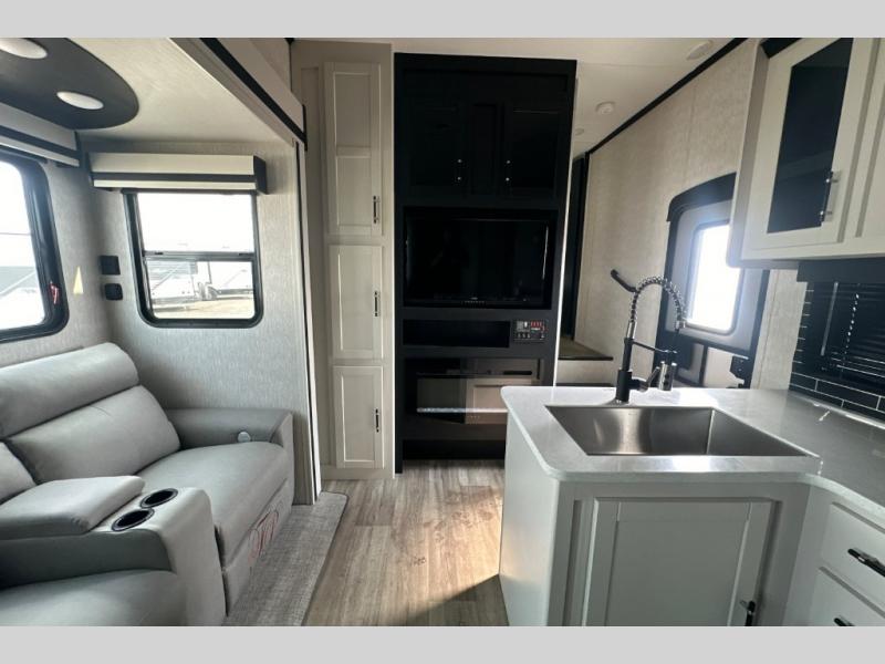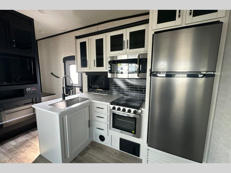 Each one of these CrossRoads RV Cruiser Aire fifth wheels and travel trailers have high end features incorporated into them! Some of these features include a Secure Stance entry step, pass-through storage with magnetic slam latch doors to keep your gear stored safely, and electric awnings with LED lights to highlight the good times at night. Their construction consists of a one piece seamless super flex roof, a five sided aluminum construction, and an aerodynamic painted front cap for an easier tow. Stay connected where ever you go with the HD digital TV antenna with Winegard WiFi prep. The interior includes hardwood cabinet doors, spacious bedroom closets, LED lighting, and many more comforts.