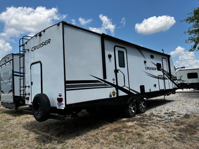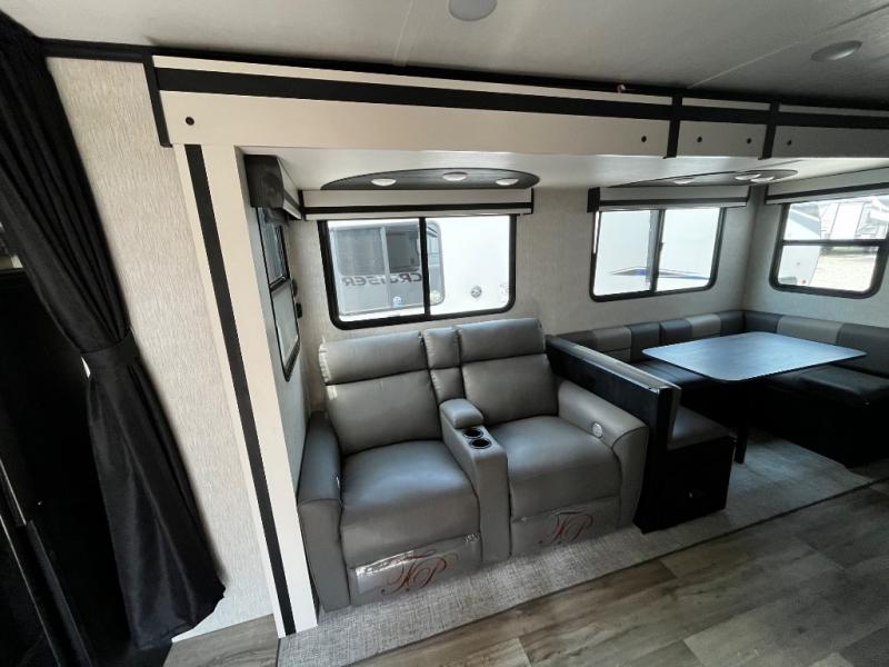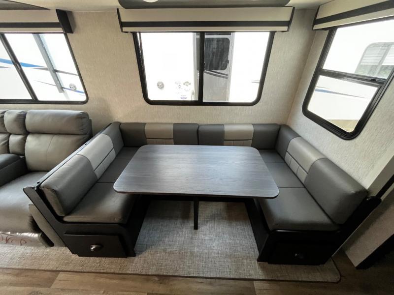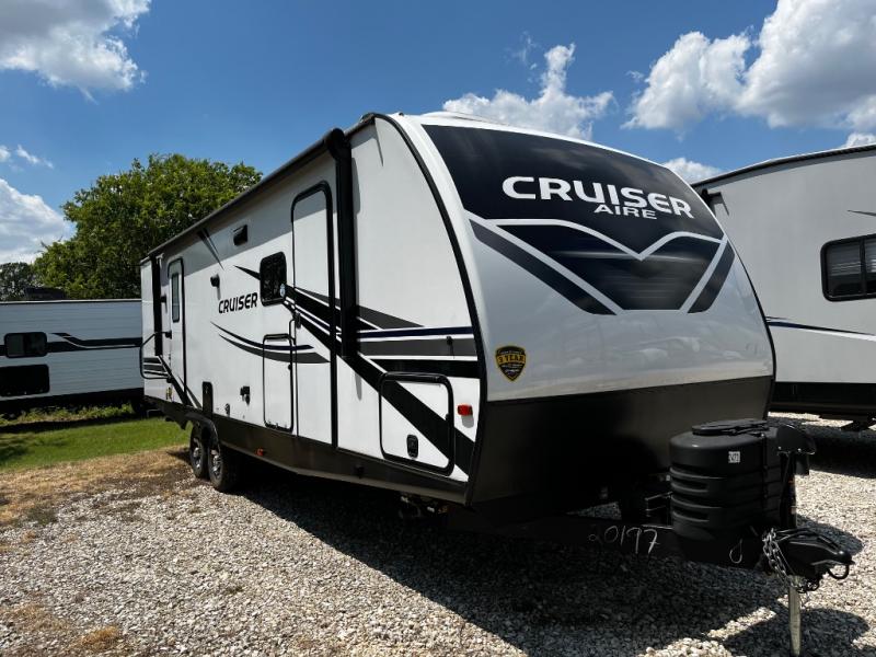 Each one of these CrossRoads RV Cruiser Aire fifth wheels and travel trailers have high end features incorporated into them! Some of these features include a Secure Stance entry step, a pass-through storage with magnetic slam latch doors to keep your gear stored safely, and an electric awning with LED lights to highlight the good times at night. Their construction consists of a total truss roof system, an aerodynamic front cap, plus laminated sidewalls, slide ends and rear wall for added durability. Stay connected where ever you go with the Winegard 360+ WiFi prep, and the HDTV will keep you entertained on those rainy days. The interior includes new cabinets, stainless steel appliances, roller shades, decorative backsplash, and many more comforts!