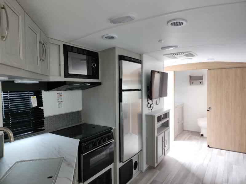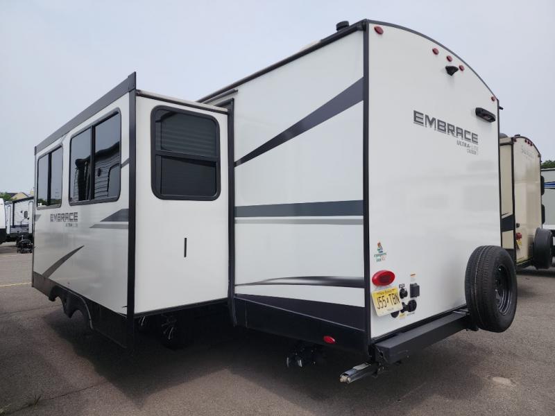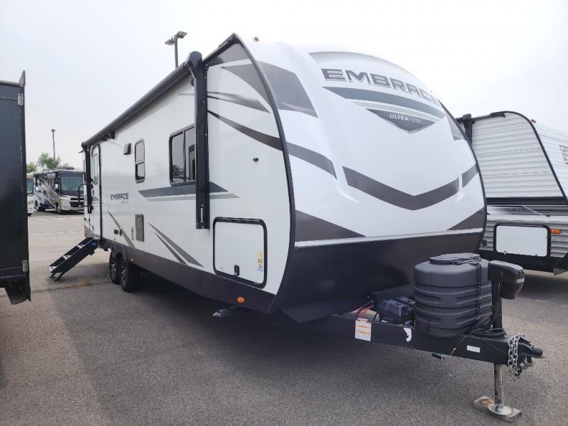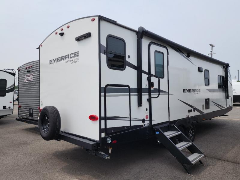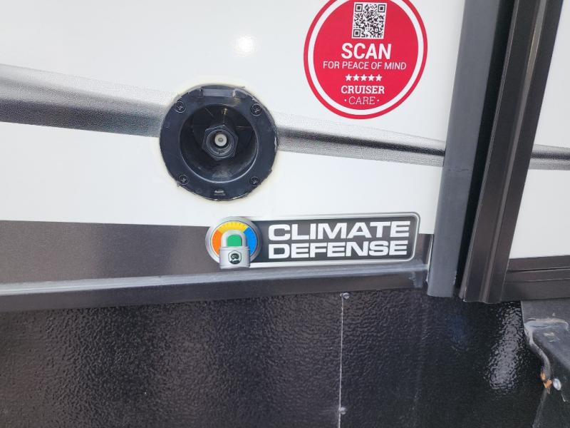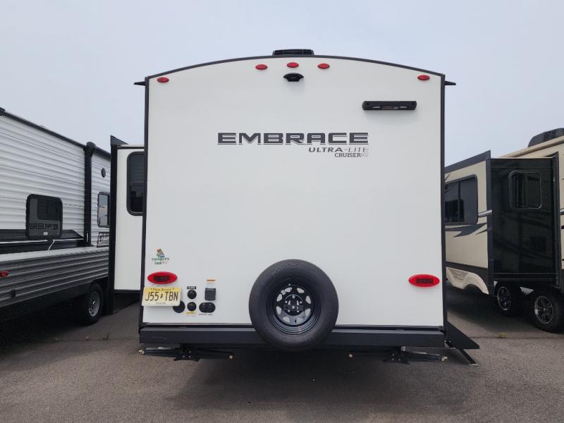 Experience a peace of mind with each one of these Cruiser Embrace travel trailers! Their superior superlite structure consists of industry leading full height cross-members, 5/8" tongue and groove plywood flooring, Toughshell laminated walls with weather-tight Azdel composite panels, and weight sparing 5-sided aluminum framing. Stay connected where ever you go with the 360 Air HD antenna with Wi-Fi prep, the conveniently located USB and 100V charging outlets, and LED Smart TV, plus their prepped roofs are solar ready with a 30 amp controller. With a Cruiser climate defense heated and enclosed underbelly, you can be sure your unit's vitals will stay protected from the elements. A TPO roof membrane covers these units and a dual ducted 13,500 BTU air conditioner with TRIO airflow system offering three dimensions for cool will keep them nice and chilled on hot summer day. Come find your favorite one today!