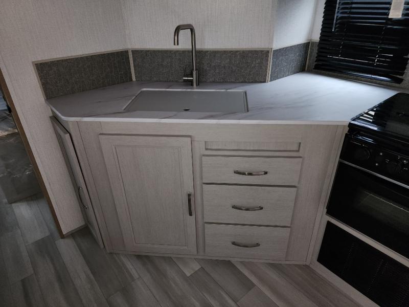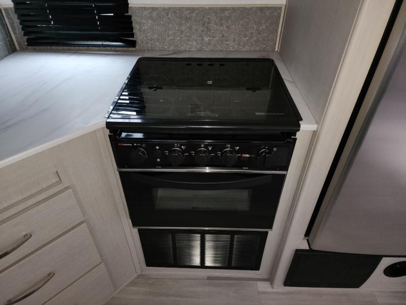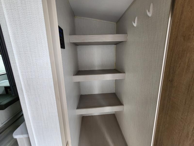 Plan out your summer vacations in this spacious travel trailer for five to six people. The large slide out will allow everyone enough space indoors including the dog who will find plenty of space to nap after a long hike. There is also a full rear bath to get cleaned up in. The chef will have everything they need to prepare a delicious lunch on the three burner cooktop, plus there is a walk-in pantry for dry goods and snacks. You can even entertain outdoors easily with the outdoor kitchen including a griddle. Your crew can dine at the booth dinette, or enjoy some fresh air under the 20' power awning with LED lights. You will feel right at home with a private bedroom up front that includes a queen bed and dual wardrobes for all your clothes!