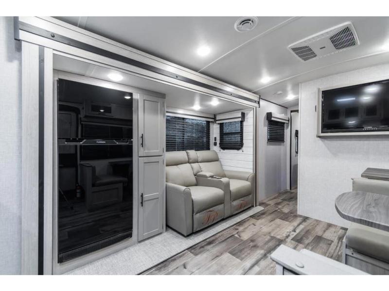 This RV features king bed, dual A/C's, back-up camera, bedroom TV, leveling system and much more.