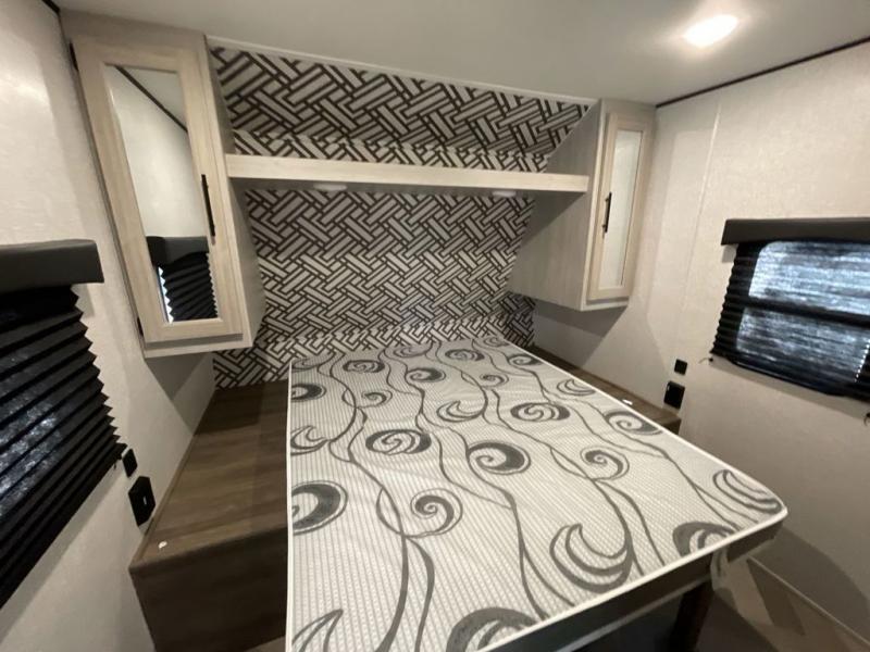 Lead your family to a great vacation getaway in any one of these CrossRoads RV Zinger travel trailers! They come with a fully enclosed underbelly with forced heat (varies by model) so that you can head to your favorite spot no matter what mother nature throws your way. The outside hot/cold shower will help keep mud from being tracked inside, and the Keyed-A-Like lock system will give you peace of mind at night or while you're away from the trailer. With an aerodynamic front end, you will get better gas mileage, and crank up the tunes with the outside speakers with LED accents. Start making memories in one of these models today!