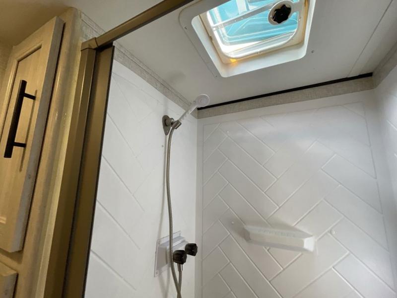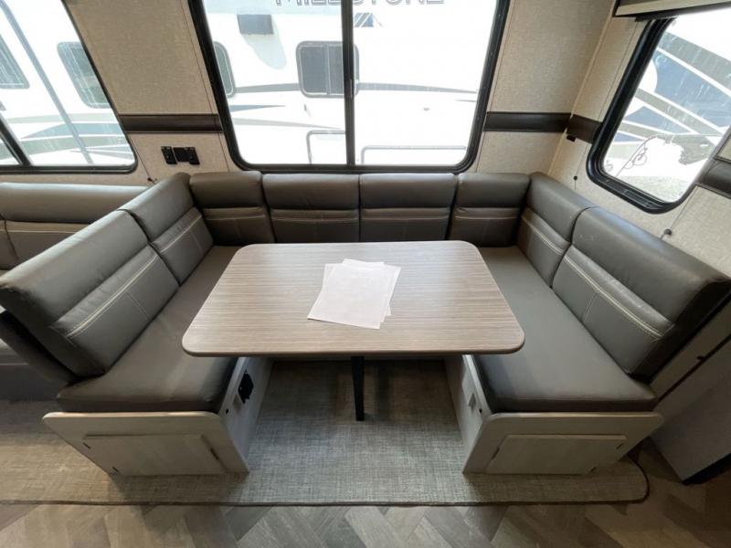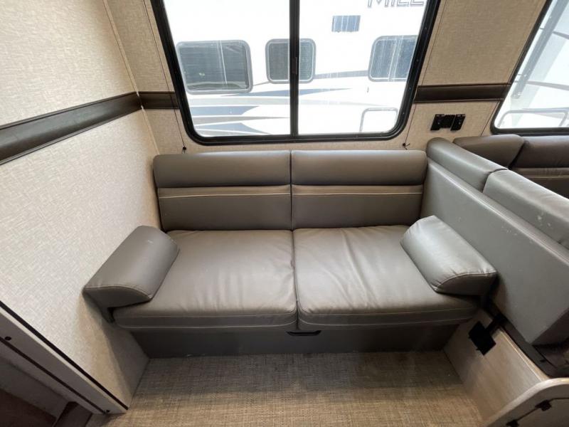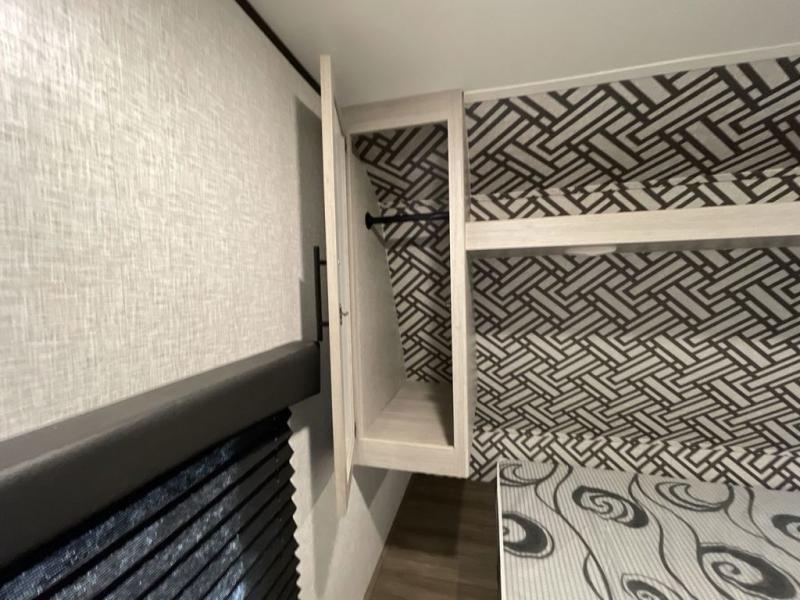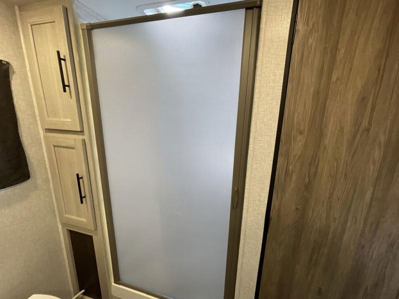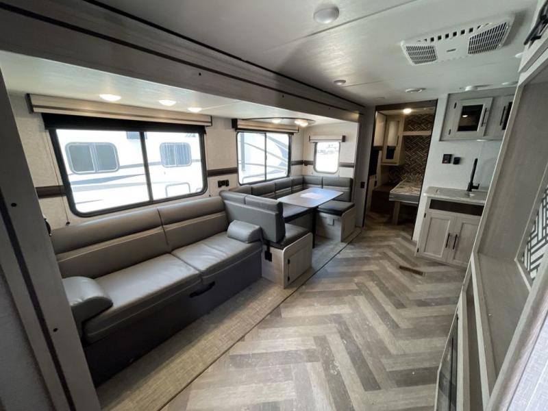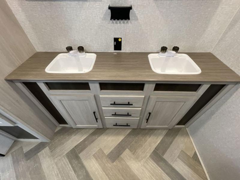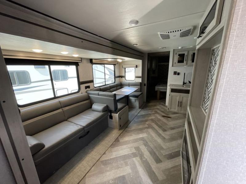 You need this award-winning travel trailer for your next weekend getaway! The full rear bathroom is decked out in features you're going to love like the dual-sink vanity for two to get ready at once, the linen closet next to the 30" x 36" shower and the second linen closet across from the closet that is prepped for the optional washer and dryer to be added. After a fun-filled day outdoors, you can head inside and relax on either the 60" jackknife sofa and enjoy the entertainment center with a fireplace or grab a snack from the 10-cu. ft. refrigerator and play a few card games at the 42" x 80" U-shaped dinette. The front private bedroom features a 60" x 74" RV queen bed with shirt closets on either side of it to keep your clothes looking nice!