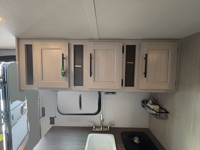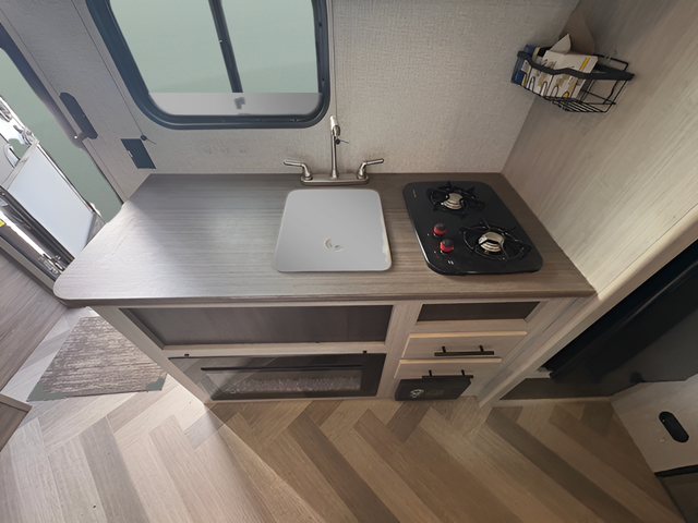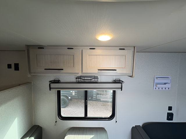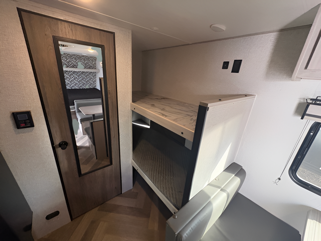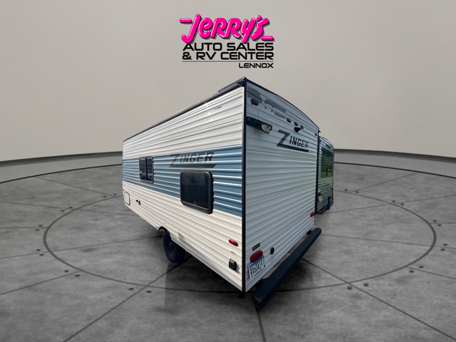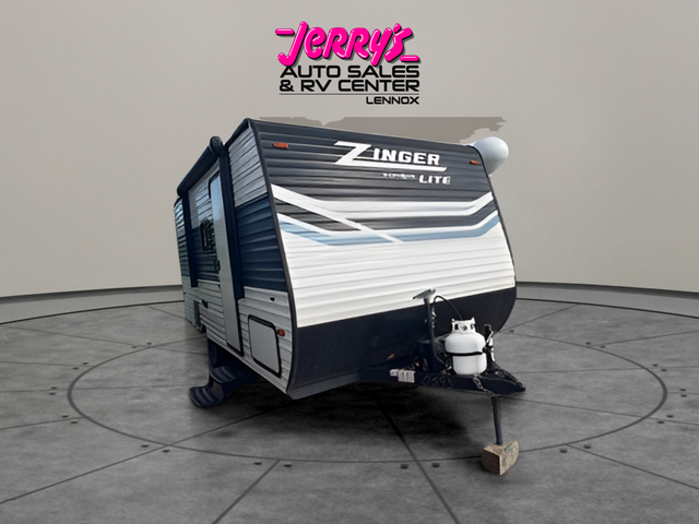 This Zinger Lite travel trailer is perfect for your next family vacation or weekend at the lake with friends. With room for five, this unit gives you the space you need to pack up the kids and the dog and get ready to hit the road! With an RV queen bed and bunk beds, everyone will have a place to sleep. The 38" booth dinette can comfortably hold one to two little ones or an adult guest. Use the oven with an LED glass top to make a home-cooked meal and easily store your dry goods in the maple cabinet drawers. Enjoy extra privacy with a rear corner bath that includes a 36" tub. This unit features multiple overhead compartments, so bring along the board games and other valuables from home.