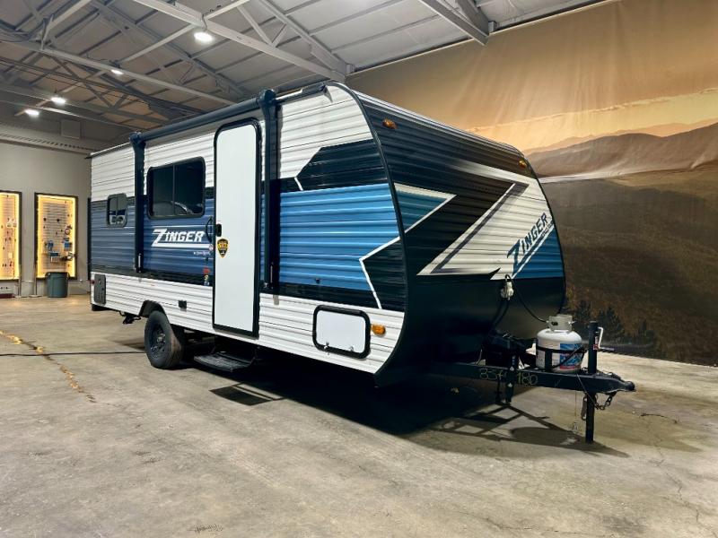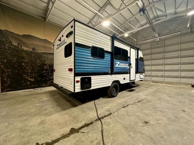 Join the CrossRoads family with a Zinger Lite travel trailer! You'll enjoy an abundance of standard features you would usually find with higher priced travel trailers. Each model features an aerodynamic front end for a more sleek look and better wind resistance when towing. You will appreciate the molded rain gutters with 3" drip spouts, plus Secure Stance entry steps and Keyed-A-Like doors. Having an AM/FM stereo with a Bluetooth soundbar will allow you to listen to your favorite tunes as you camp, and there are outdoor speakers with LED accents if you plan to take the party outdoors. The Zinger Lite also features a 81" interior ceiling height, generous storage space, plus popular options that can be added to further customize your RV. Choose yours today!